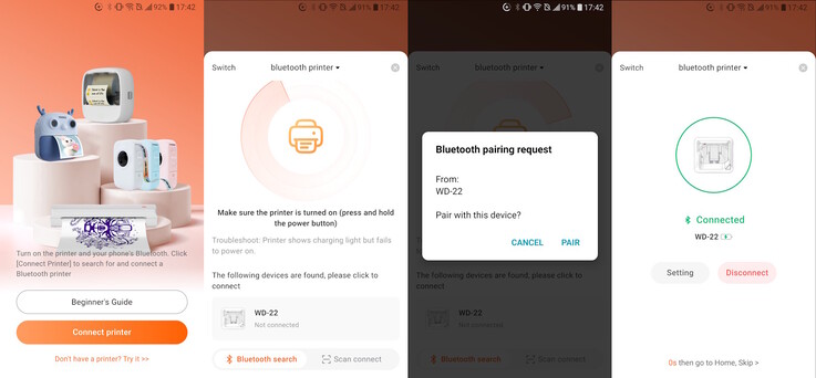 L'applicazione Android/iOS controlla la stampante e richiede che i servizi Bluetooth e di localizzazione siano attivi per la connessione del Tag Inkwon.