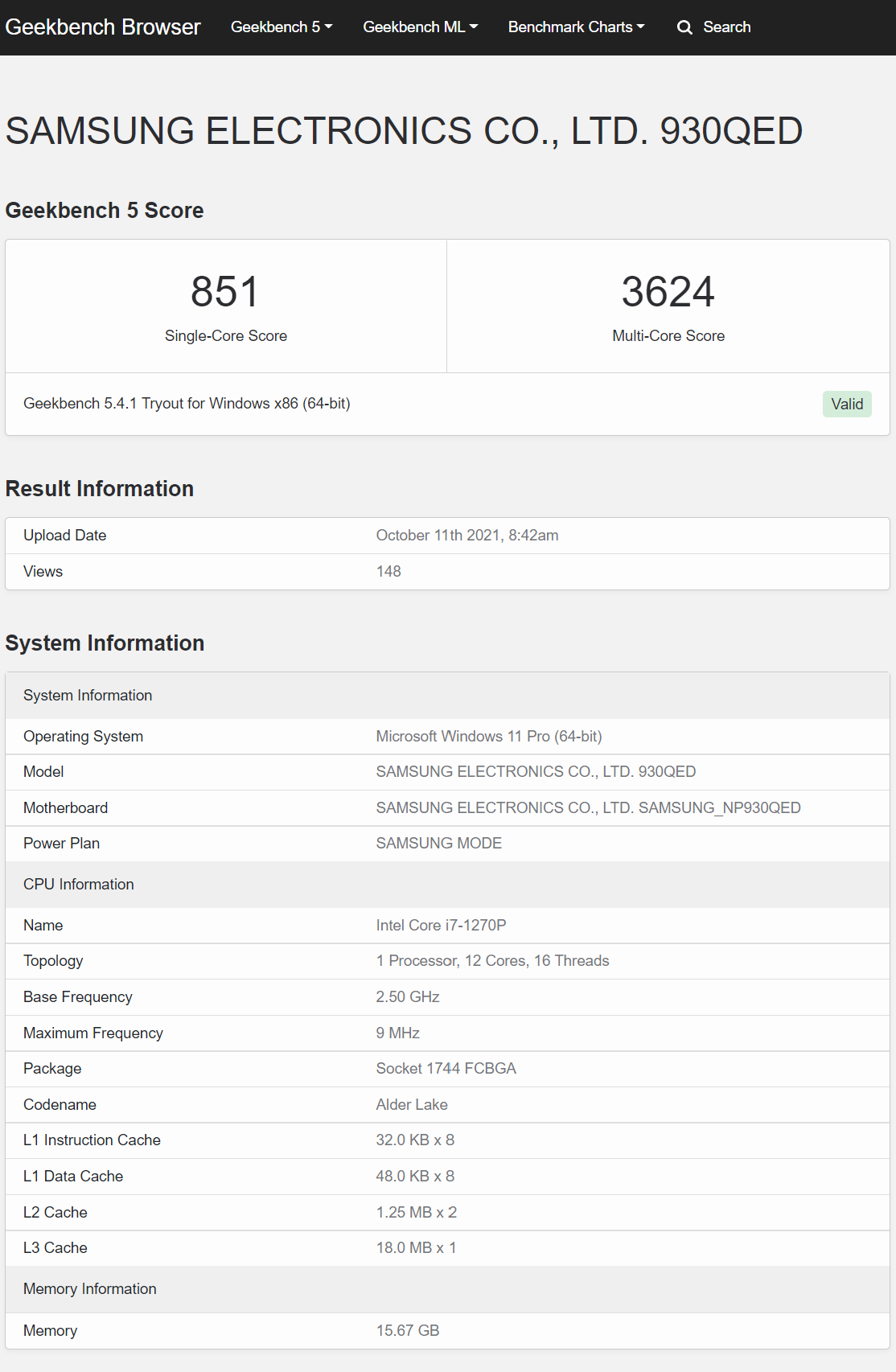 Un altro inedito Galaxy Book con un processore mobile Alder Lake è apparso su un sito di benchmarking. Il mese scorso, un modello a 14 core è emerso su UserBenchmark con il nome 'Samsung 930QED'. Il dispositivo aveva anche 20 threads, suggerendo che ha 6 core di performance multi-threaded (Golden Cove) e 8 core di efficienza single-threaded (Gracemont).