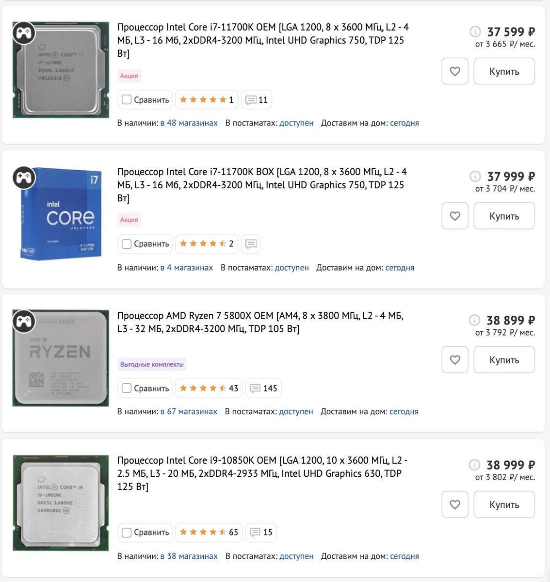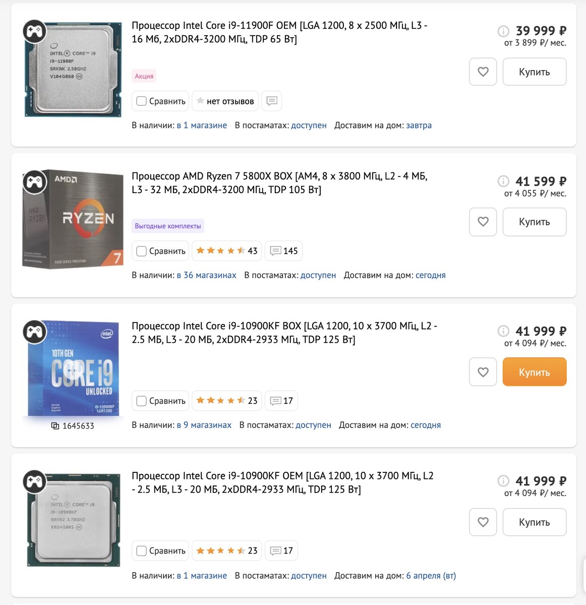 In questo pezzo, vorrei presentarvi i prezzi attuali delle CPU Intel e AMD da gioco in Francia, Germania, Russia e Stati Uniti. Ciò che questo esercizio rivelerà è che i prezzi attuali di Intel sono più competitivi di quelli di AMD nei principali mercati occidentali. La ragione di questo è che Intel è in grado di tenere il passo con la domanda molto meglio di AMD. Tutti i chip Intel rilasciati di recente sono in stock e prontamente disponibili, mentre le offerte più competitive di AMD, gli ultimi processori Ryzen 9, sono davvero difficili da trovare in Occidente. Tuttavia, le cose sono ancora peggiori per AMD quando si tratta delle sue offerte consumer di fascia media, perché le sue ultime CPU Ryzen 5 e Ryzen 7 sono significativamente sopravvalutate rispetto alle controparti Intel di pari capacità. Per di più, sta diventando sempre più chiaro che Intel ha deciso di iniziare a competere contro se stessa, dal momento che le CPU Intel di 11a generazione sono molto paragonabili in termini di valore alle parti di 10a generazione, ora meno costose. Alcuni dicono che questa è una follia, ma io penso che ci sia un metodo in questa follia, ma più avanti su questo punto. Per prima cosa, diamo un'occhiata all'attuale situazione dei prezzi delle CPU nei paesi sopra citati. Tutti i rivenditori che ho scelto per questo confronto vendono CPU online, il che significa che chiunque nei rispettivi paesi può relativamente facilmente acquistare una CPU attraverso questi rivenditori.
