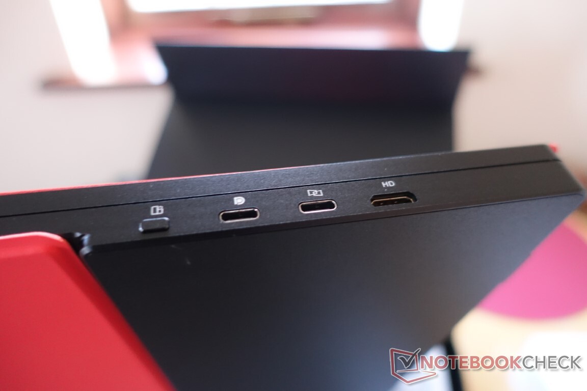 Di conseguenza, la "parte commerciale" si trova tutta sullo stesso lato, con la porta DisplayPort-, (C1) DisplayLink- (C2) e HD- (HDMI), chiaramente destinate alla connessione dei dispositivi, tutte nello stesso posto, accanto al pulsante di commutazione della modalità. La capacità di commutare FlipGo tra le modalità display esteso e dual-desktop è una delle cose che ha funzionato perfettamente fin dall'inizio.