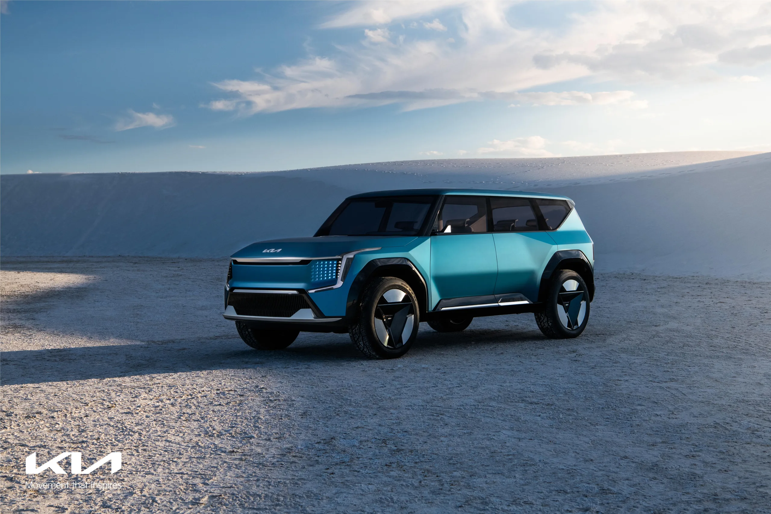 Il concetto di EV9 è stato rivelato alla fine dello scorso anno; il SUV dovrebbe misurare circa 16 piedi (5 m) di lunghezza, con caratteristiche chiave tra cui un display da 27 pollici (~69 cm) e una piastra di guida al posto del volante. L'auto avrà una gamma di 336 miglia (540 km), e una carica di 6 minuti permetterà al veicolo di viaggiare fino a 62 miglia (100 km)