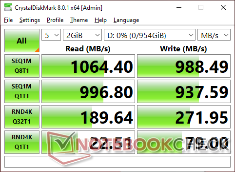Kingston ci ha inviato un'unità XS2000 da 1 TB per le nostre impressioni e benchmark. Mentre la confezione vanta "fino a 2000 MB/s" quando è collegato a una porta USB-C 3.2 Gen. 2, siamo solo in grado di registrare fino a 1000 MB/s sulla nostra unità di prova quando è collegato al nostro 11 ° gen Intel Tiger Lake-H Maingear Vector Pro gaming laptop. Gli utenti potrebbero dover passare al modello da 2 TB per i 2000 MB/s di velocità di trasferimento pubblicizzati.