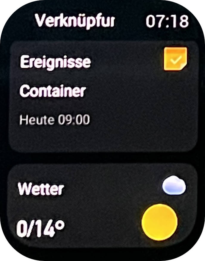 L'ultimo widget, ovvero quello a sinistra del quadrante dell'orologio, mostra una lista di schede con informazioni importanti come si vede nel nostro primo screenshot. È possibile cambiare l'ordine delle carte.