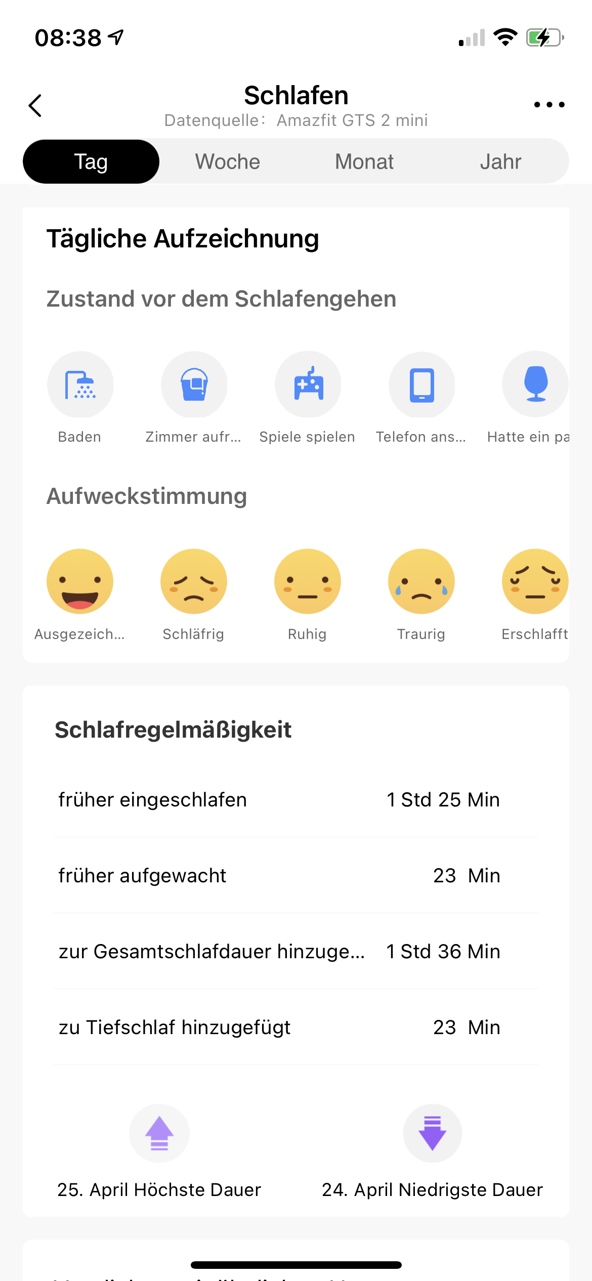 I dati che l'Amazfit GTS 2e raccoglie durante la giornata vengono visualizzati in un dashboard giornaliero. Non differiscono significativamente dai dati raccolti dall'Amazfit GTS 2 mini durante lo stesso periodo, ma non coincidono in diversi punti. Questo può essere visto nel dashboard corrispondente allo stesso giorno nella recensione di Amazfit GTS 2 miniHuami Amazfit GTS 2 mini im Test: Funktionale und derzeit reduzierte Smartwatch mit Alexa, che pubblicheremo nei prossimi giorni.