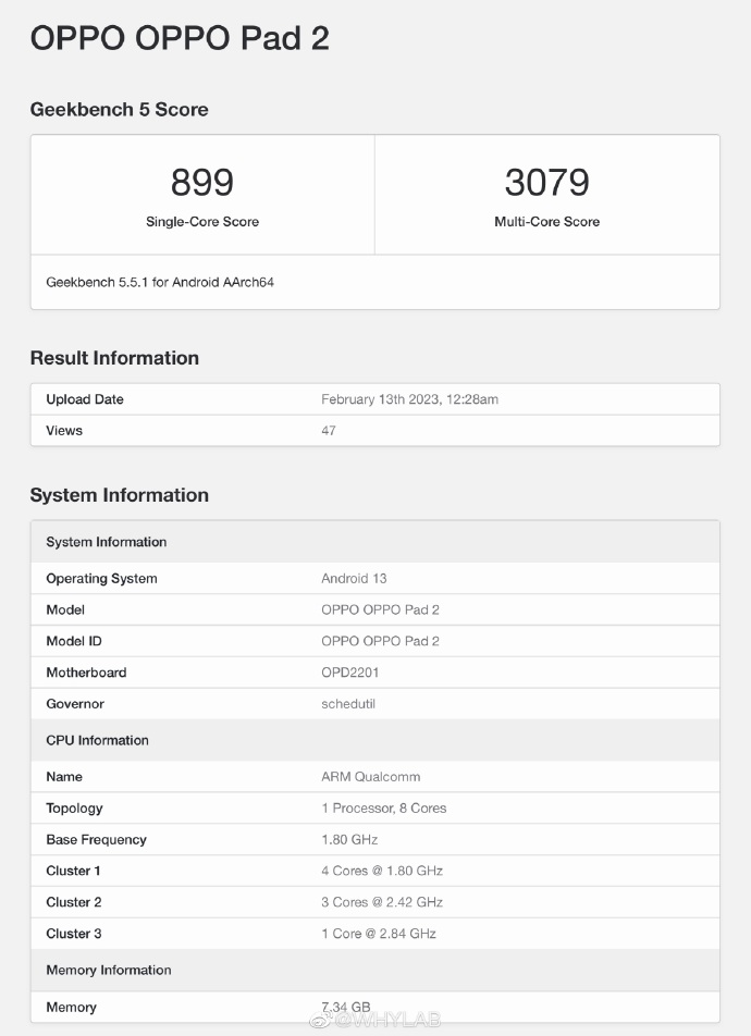 Invece, il "Pad 2" è apparso su Geekbench 6così come la sua versione precedente 5con un chipset Qualcomm con 1 dei suoi 8 core a 2,84GHz: lo Snapdragon 888a quanto pare. Entrambe le nuove fughe di notizie fanno riferimento a 8 GB di RAM e a una versione di ColorOS 13 per la Serie Pad fuori dalla scatola.