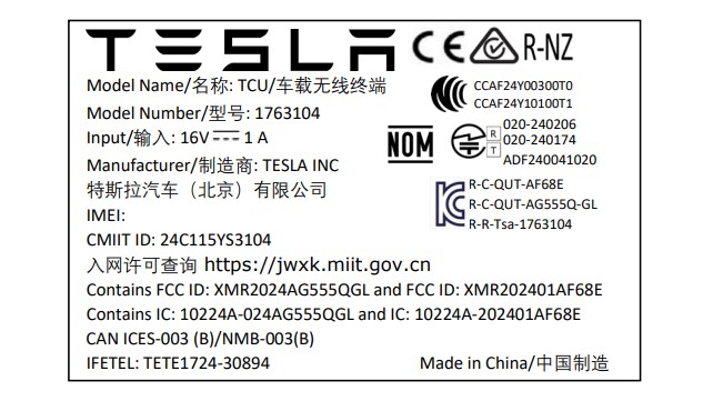 Le fortunate unità Model Y sono dotate del modem Quectel AG555QGL, già testato e approvato per l'uso nei veicoli Tesla dalla Federal Communications Commission (FCC). Questa serie di modem 5G per autoveicoli offre fino a 2,4 Gbps di download e 550 Mbps di upload nelle reti 5G NR di vettori statunitensi come T-Mobile, e fino a 1,6 Gbps di download e 200 Mbps di uplink quando ci si trova nella gamma delle reti LTE Advanced.