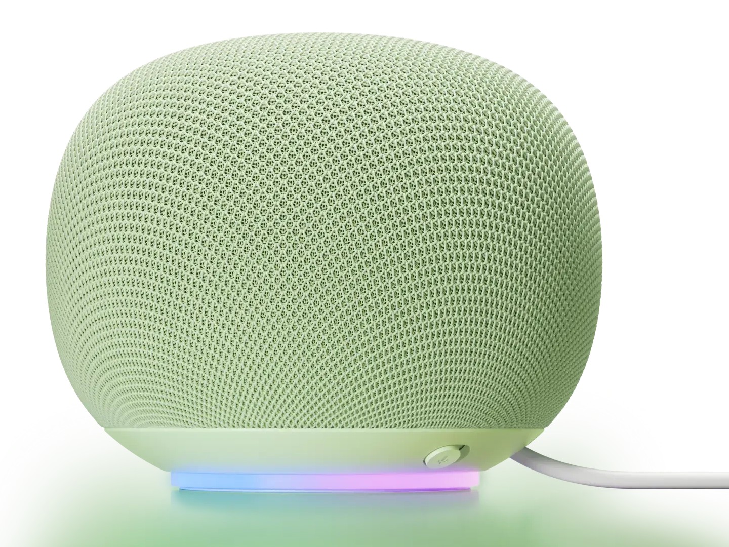 Il Google Home Speaker ha un design che non assomiglia affatto ai precedenti smart speaker di Google. Ha un design quasi sferico, ma con una parte superiore e una base piatte. L'altoparlante cablato ha una luce ad anello nella parte inferiore che si illumina quando l'altoparlante sta ascoltando o parlando. C'è anche un pulsante di esclusione del microfono nella parte inferiore.