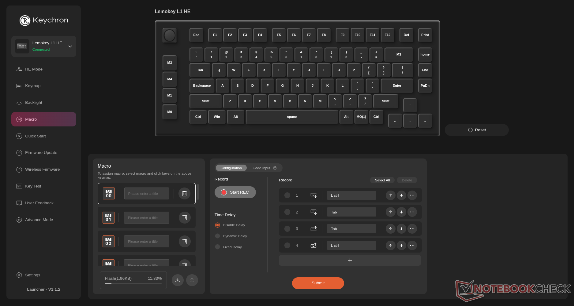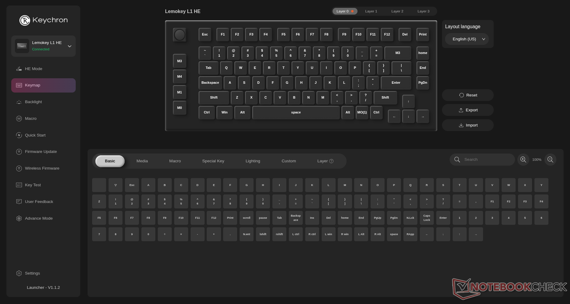 Lemokey L1 HE è una tastiera da gioco wireless a effetto Hall del marchio di giochi Keychron. Presenta un layout esploso al 75% con una manopola e una colonna macro montata a sinistra. È completamente personalizzabile e rimappabile in Keychron Launcher o Lemokey Launcher, e dispone di tasti PBT a doppio colpo, con la variante nera che offre tasti lucidi.
