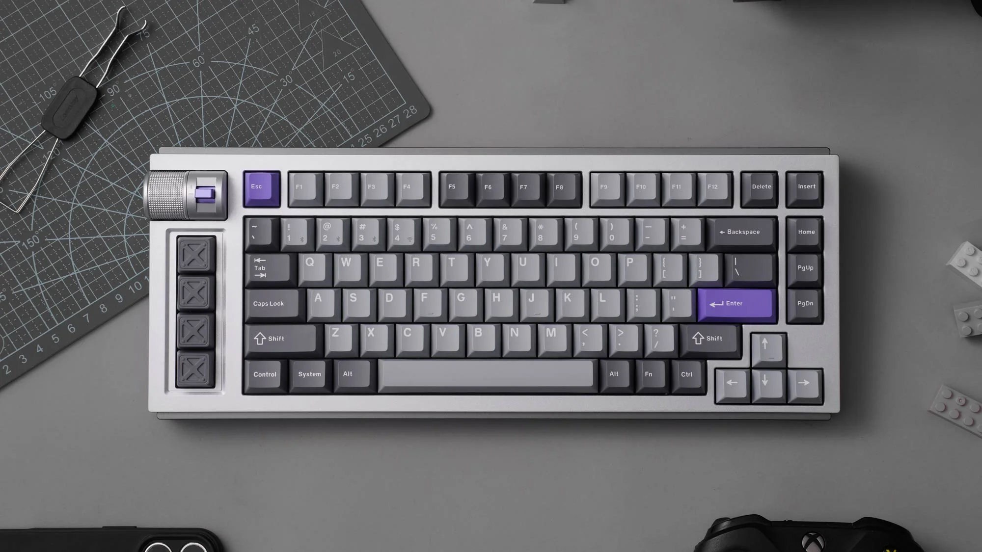 In termini di digitazione e produttività, Lemokey L1 HE ha molto da offrire. Il layout al 75% la rende una tastiera comoda da usare sia per il lavoro che per il gioco, con la riga F e la colonna macro sul lato sinistro particolarmente utili quando si tratta di giochi che richiedono molti input. La colonna macro è utile anche per le scorciatoie personalizzate nei flussi di lavoro di produttività, soprattutto in combinazione con funzioni come DKS e ModTap - tutte facilmente configurabili in Keychron Launcher o Lemokey Launcher. La posizione della manopola e dell'interruttore di alimentazione/connettività è ottima per l'ergonomia, dal momento che lo spazio extra non intacca lo spazio di movimento. La manopola presenta una texture zigrinata e grippante ed è facile da ruotare, con la rotazione dentellata che fornisce un feedback tattile soddisfacente senza rendere difficile la rotazione. Anche se l'altezza frontale di 23 mm non è terribile, sarebbe bello vederla ridotta a meno di 20 mm per motivi di comfort.