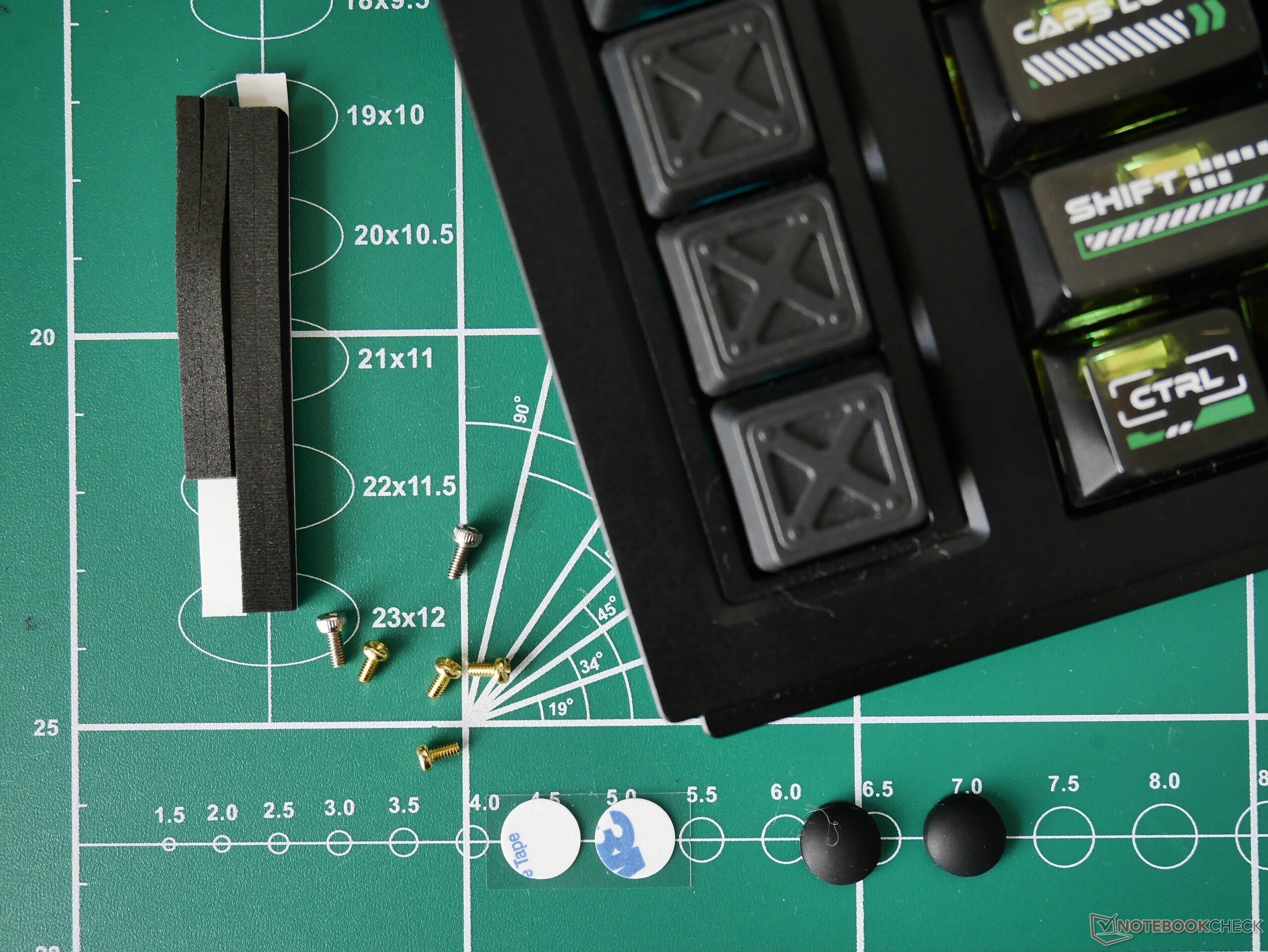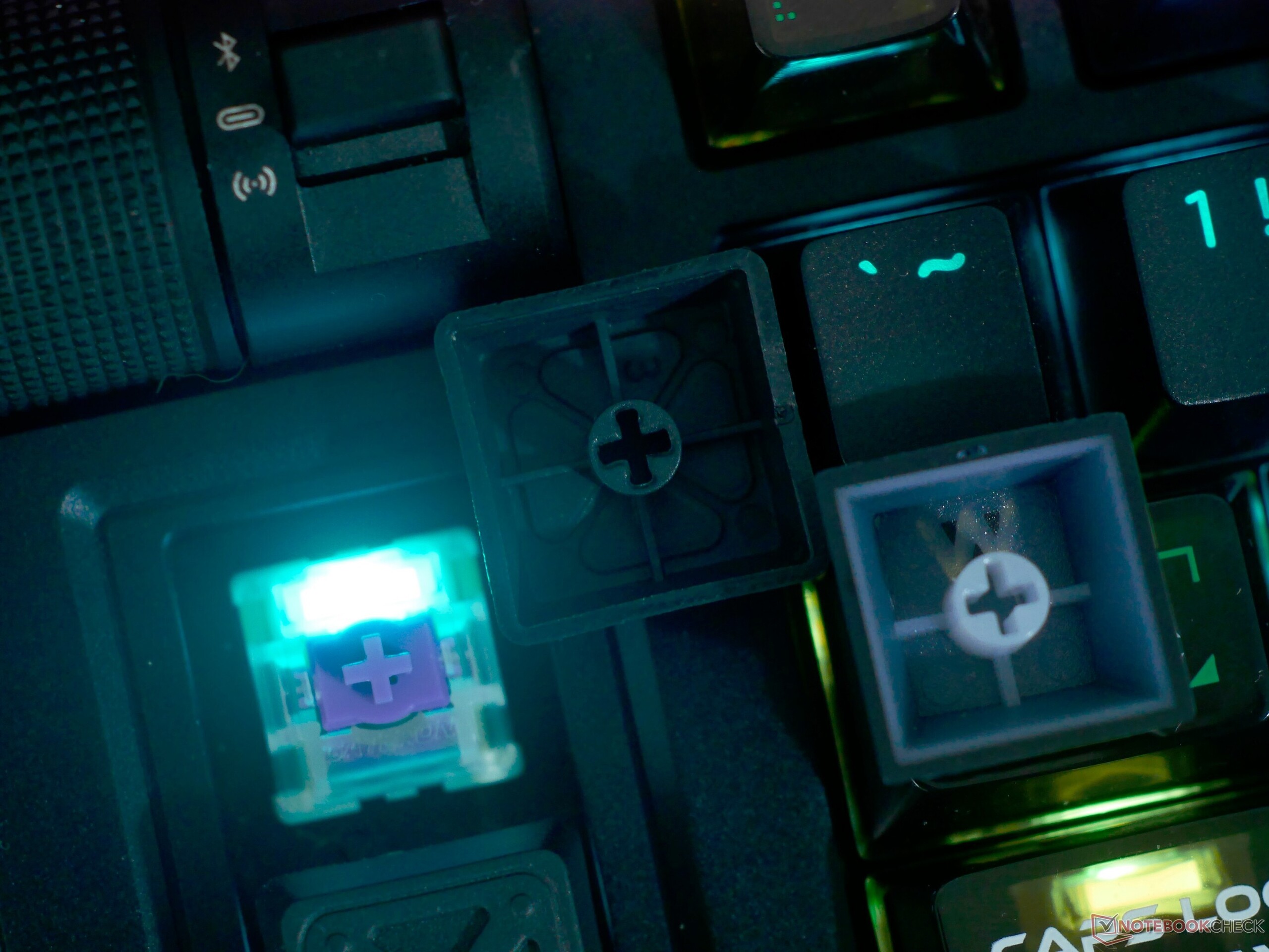 Allo stesso modo, anche i copritasti e il pacchetto di accessori sono di alta qualità. Le scritte sui tasti sono illuminate in modo uniforme dalla retroilluminazione RGB e la texture dei tasti principali è piacevole al tatto. I tasti PC trasparenti hanno una superficie lucida, che potrebbe risultare scomoda per alcuni, ma è stato abbastanza facile abituarsi durante il nostro periodo di recensione.