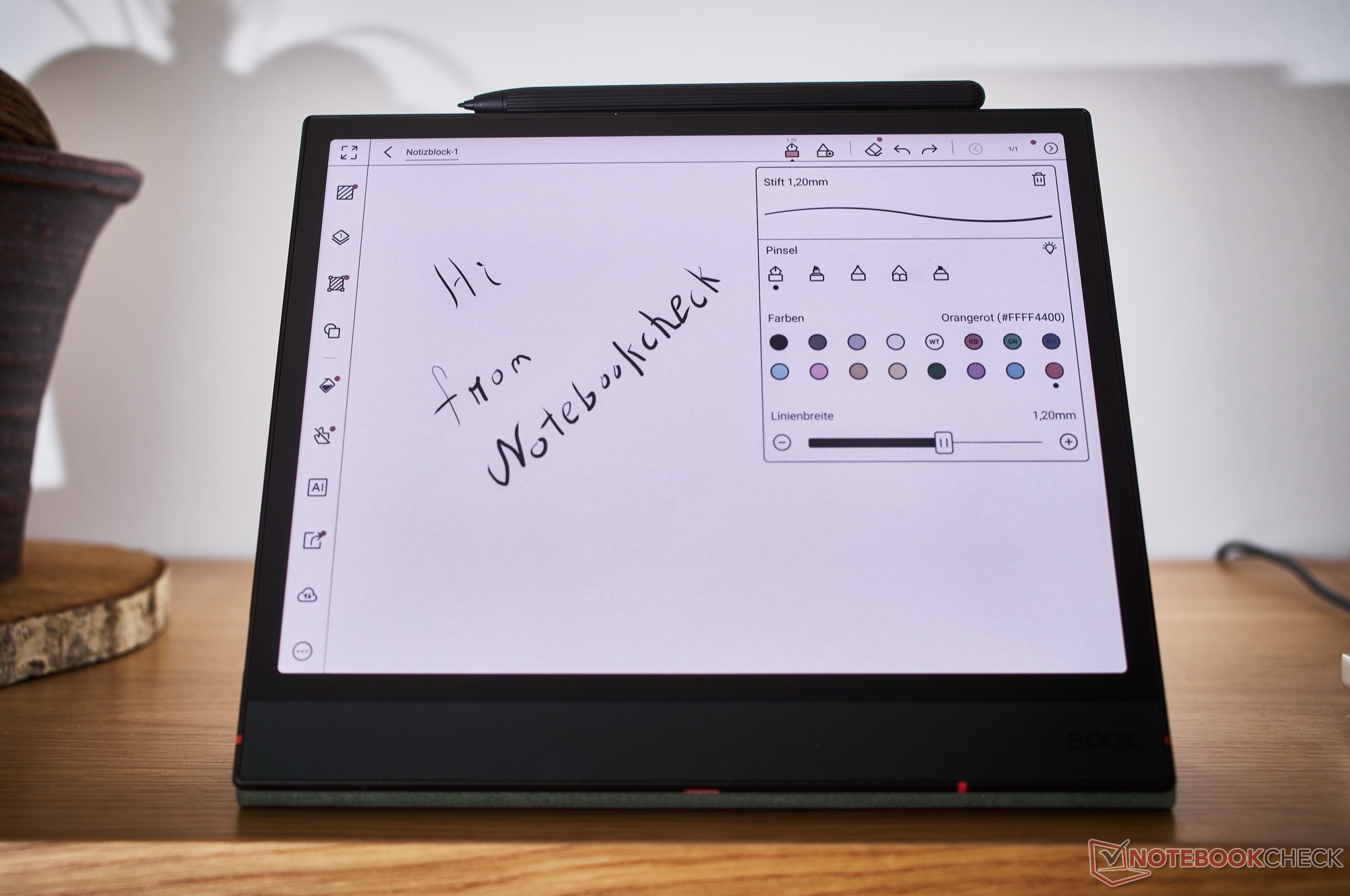 Il fulcro del tablet è il suo display E-Ink da 10,3 pollici basato su un pannello Kaleido 3, in grado di visualizzare 4.096 colori. In modalità a colori, lo schermo produce 1.240 × 930 pixel a 150 PPI; quando si visualizzano solo contenuti in bianco e nero, la risoluzione salta a 2.480 × 1.860 pixel. Il pannello è sufficientemente veloce per uno scorrimento fluido di applicazioni e siti web, ma è ancora poco adatto alla riproduzione di video, perché le immagini rimangono troppo a lungo.