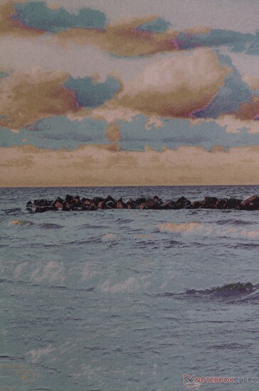 Come per tutta la tecnologia E-Ink, i contenuti rimangono poco visibili finché il display non esegue un aggiornamento completo. Questo avviene automaticamente a intervalli prestabiliti, ma può anche attivarlo manualmente strisciando verso l'interno dal bordo sinistro dello schermo. Come illustrano le foto qui sotto, la resa dei colori non è impeccabile. Con una tavolozza limitata con cui lavorare, il pannello fatica con i gradienti e i blu e gli arancioni vivaci. Nonostante ciò, la resa cromatica è utile per la lettura di fumetti e manga.