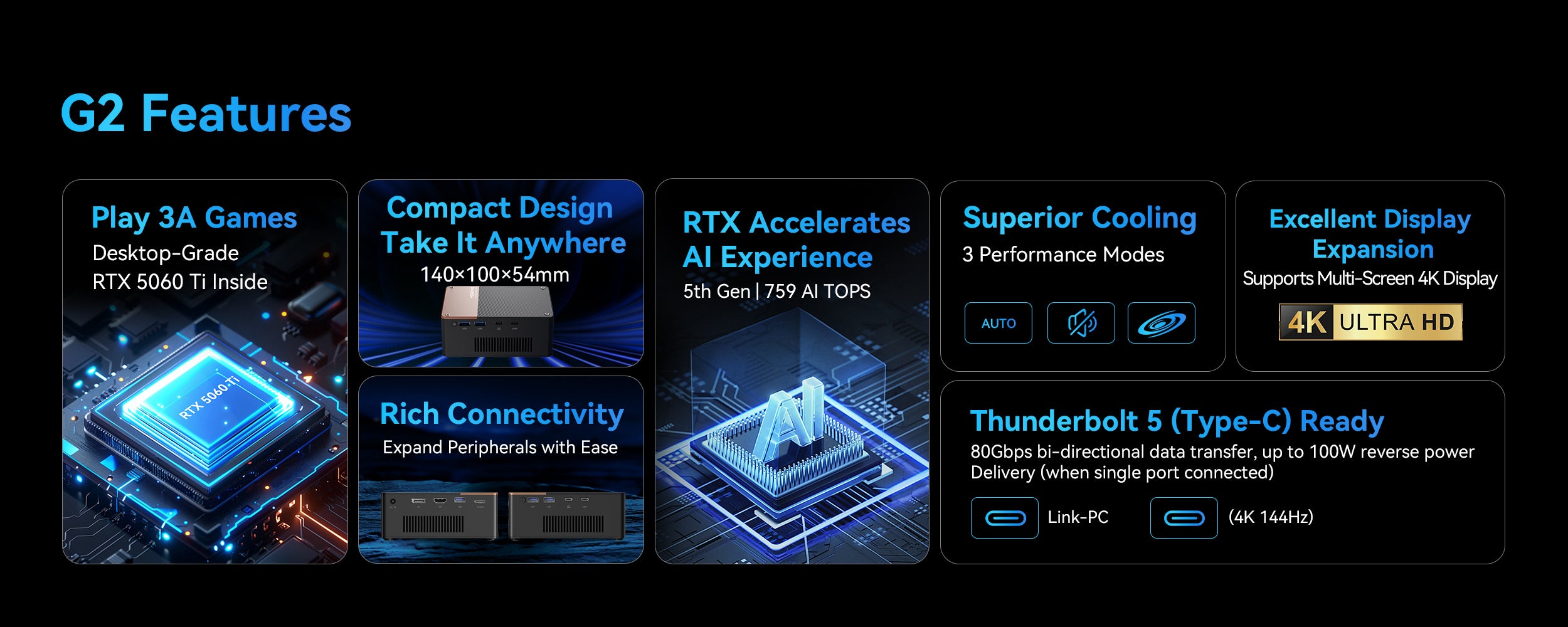 Morefine ha lanciato una nuova eGPU, la G2, e porta una Nvidia RTX 5060 Ti desktop con 16 GB di VRAM GDDR7. Sebbene l'azienda non abbia condiviso alcuna metrica delle prestazioni, vale la pena notare che questa GPU esterna è dotata di una porta OCuLink 4.0 x4.