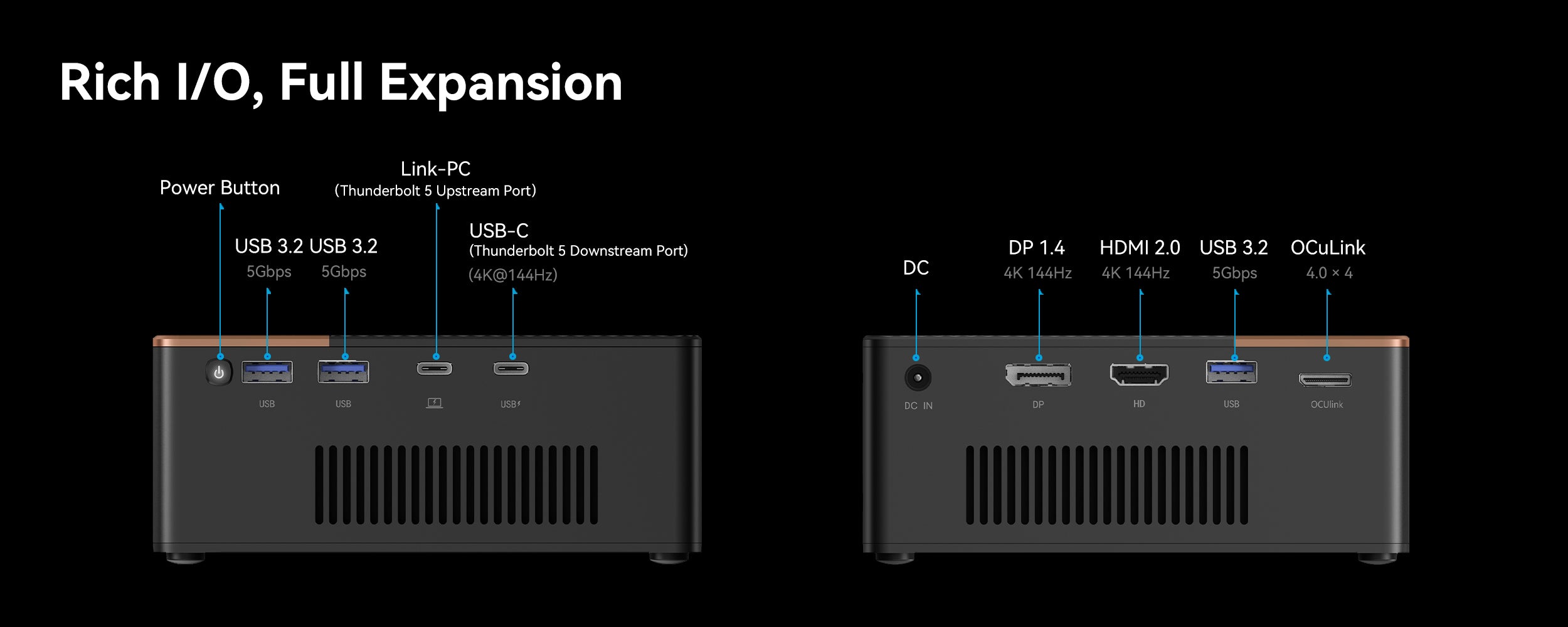 Ci sarà un certo livello di calo delle prestazioni, ma con OCuLink, in genere non supera un quarto se abbinato a un host capace. Per coloro che hanno un sistema senza questa porta, c'è una porta Thunderbolt 5, che funzionerà anche con l'interfaccia Interfaccia USB4 v2.