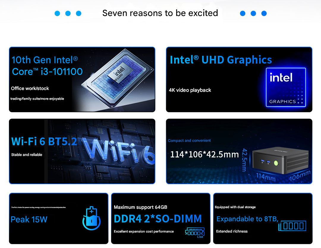 Presenta il Core i3 10110Uun processore mobile economico della linea Comet Lake. La CPU presenta due core e quattro thread, il che significa che il mini PC non sarà in grado di gestire carichi di lavoro pesanti con facilità. C'è l'iGPU Intel UHD 620, che è un passo indietro rispetto alle più recenti soluzioni di GPU integrate, ma può comunque gestire bene i media normali.