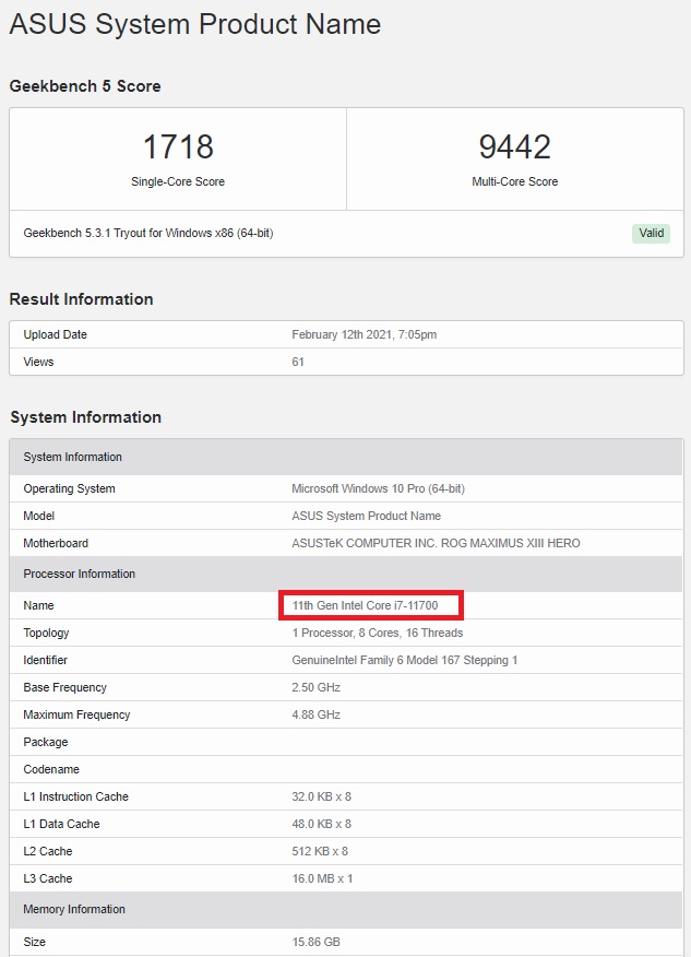| Intel Core i7-11700 leak | |