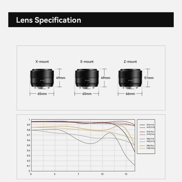 L'obiettivo è adatto alle fotocamere Sony E-mount e Fujifilm X-mount, mentre le varianti nera e argento funzionano anche con la Nikon Z-mount. In ogni caso, l'obiettivo è adatto solo alle fotocamere con un sensore APS-C, in quanto non copre completamente un sensore full-frame