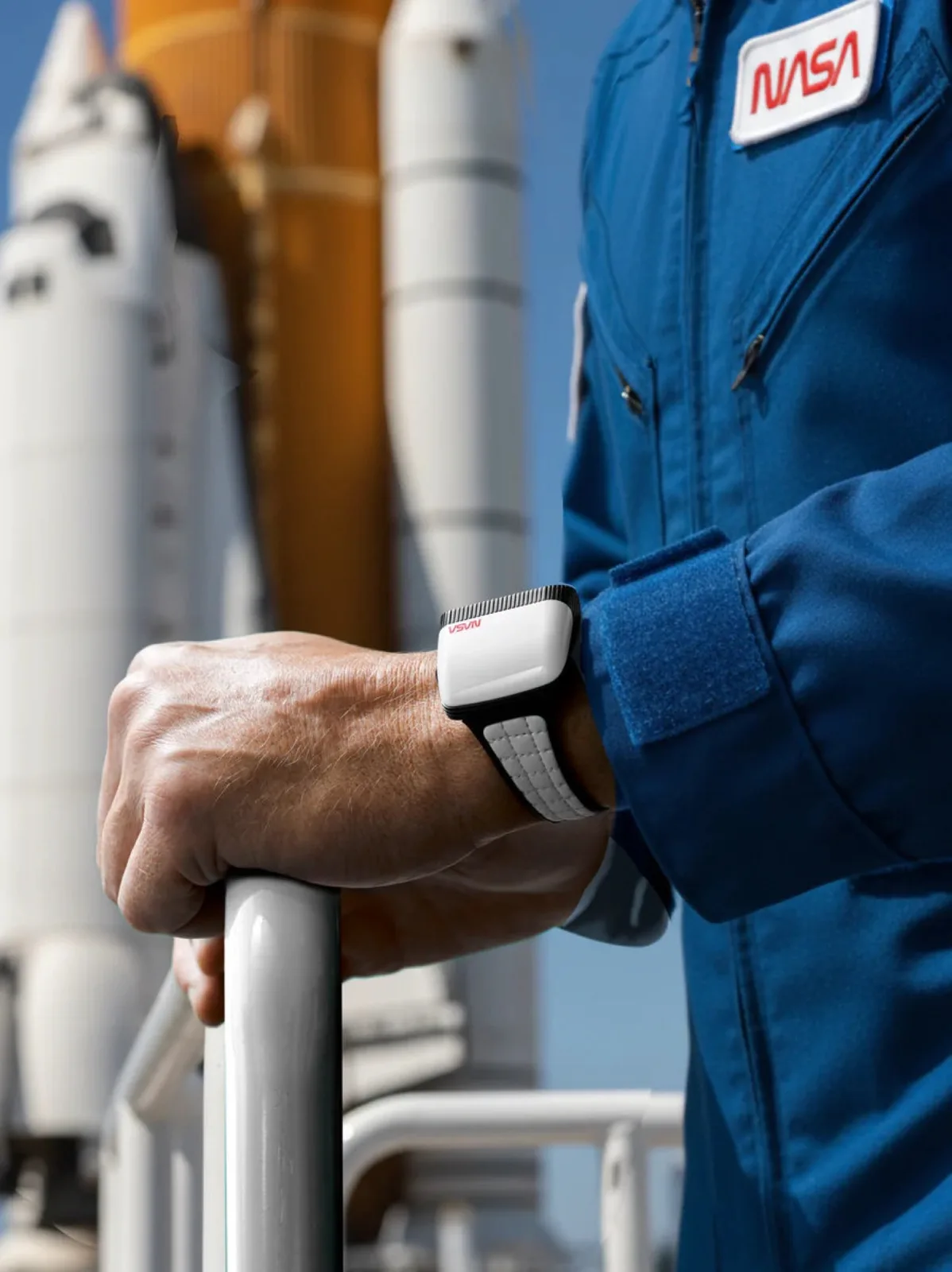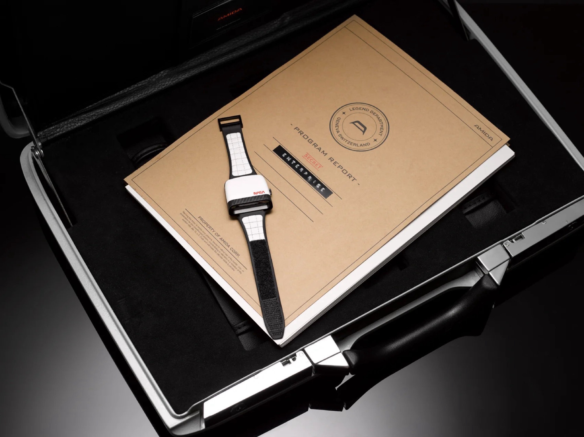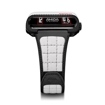 L'Amida Digitrend NASA Tribute Limited Edition è una riedizione dell'Amida Digitrend del 1976, ma il nuovo orologio svizzero ha un design fondamentalmente rivisto. La cassa in ceramica bianca lucida con logo NASA rosso e la confezione sferica in plastica trasparente sono allusioni alle navette spaziali del programma Apollo.