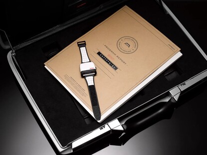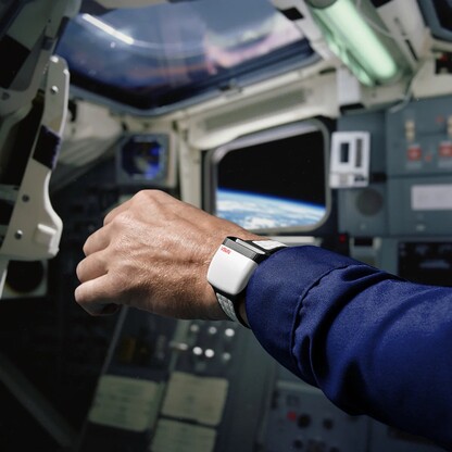 Il cinturino combina la pelle bianca con una chiusura in velcro, come quella utilizzata dagli astronauti, che consente di regolare la lunghezza del cinturino in modo continuo. Il fondello è in acciaio inossidabile e offre una visione del movimento Soprod Newton P092, che è dotato di 23 rubini e deve essere caricato solo ogni 44 ore. La cassa quasi quadrata ha una lunghezza del bordo di 39 millimetri e un'altezza di 15,6 millimetri, con un peso di 90 grammi
