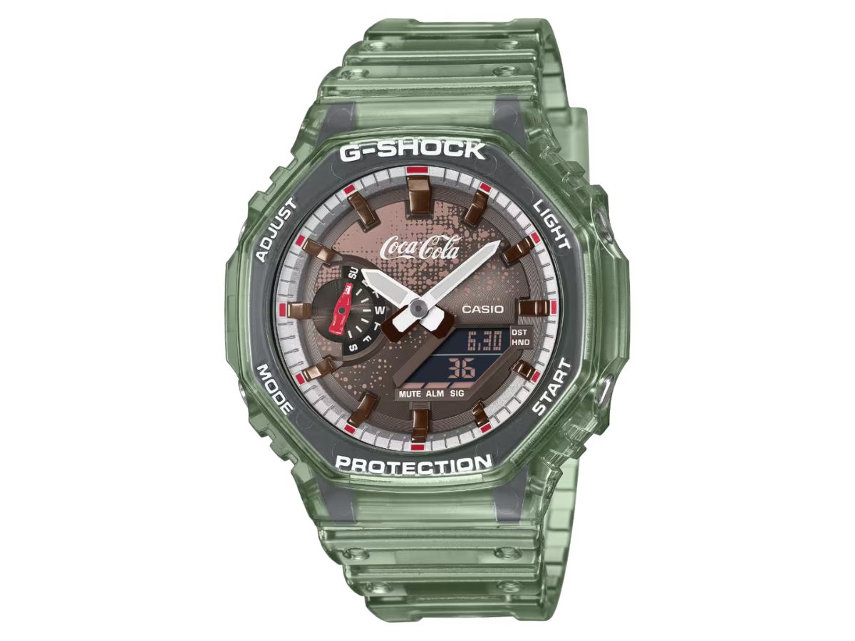 Casio ha rivelato ufficialmente il nuovo orologio G-Shock x Coca-Cola. Trapelato in precedenza nel mese di aprile 2026è basato sul modello ibrido GA-2100, che celebra il 140° anniversario della popolare bevanda analcolica.