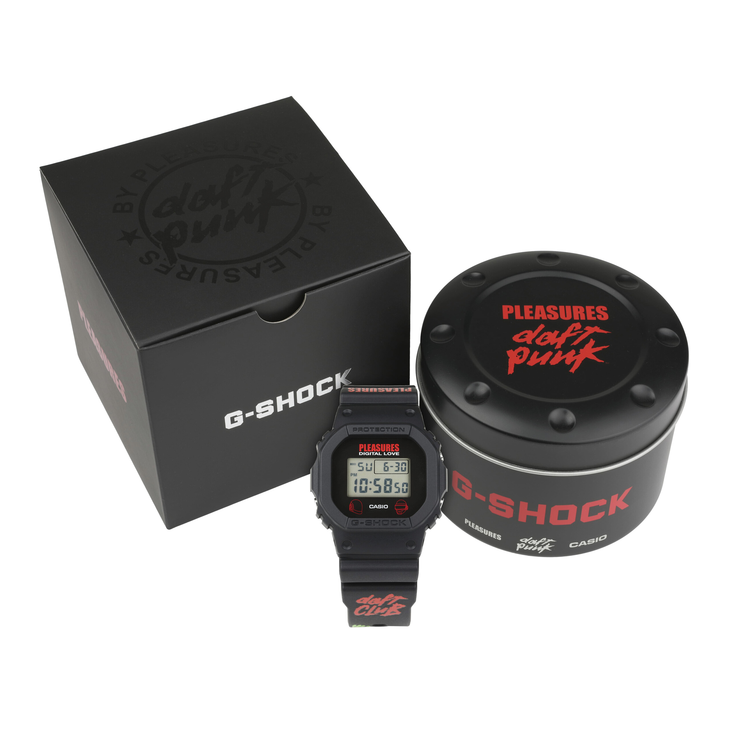 Questo modello a tripla collaborazione presenta la caratteristica cassa "quadrata" DW-5600, con marchio e immagini ispirate all'iconico duo di produttori di musica elettronica Daft Punk, tra cui motivi di caschi e testi sul cinturino e sulla fascia. Anche la retroilluminazione mostra immagini dei Daft Punk. Le vendite saranno limitate al Casio USA Online Store e al negozio ufficiale di Pleasures. Il mercato giapponese non avrà un rilascio ufficiale, come indicato da Great G-Shock Worldma sono previste importazioni parallele. Tuttavia, si prevede che i prezzi saranno superiori a causa della disponibilità limitata.