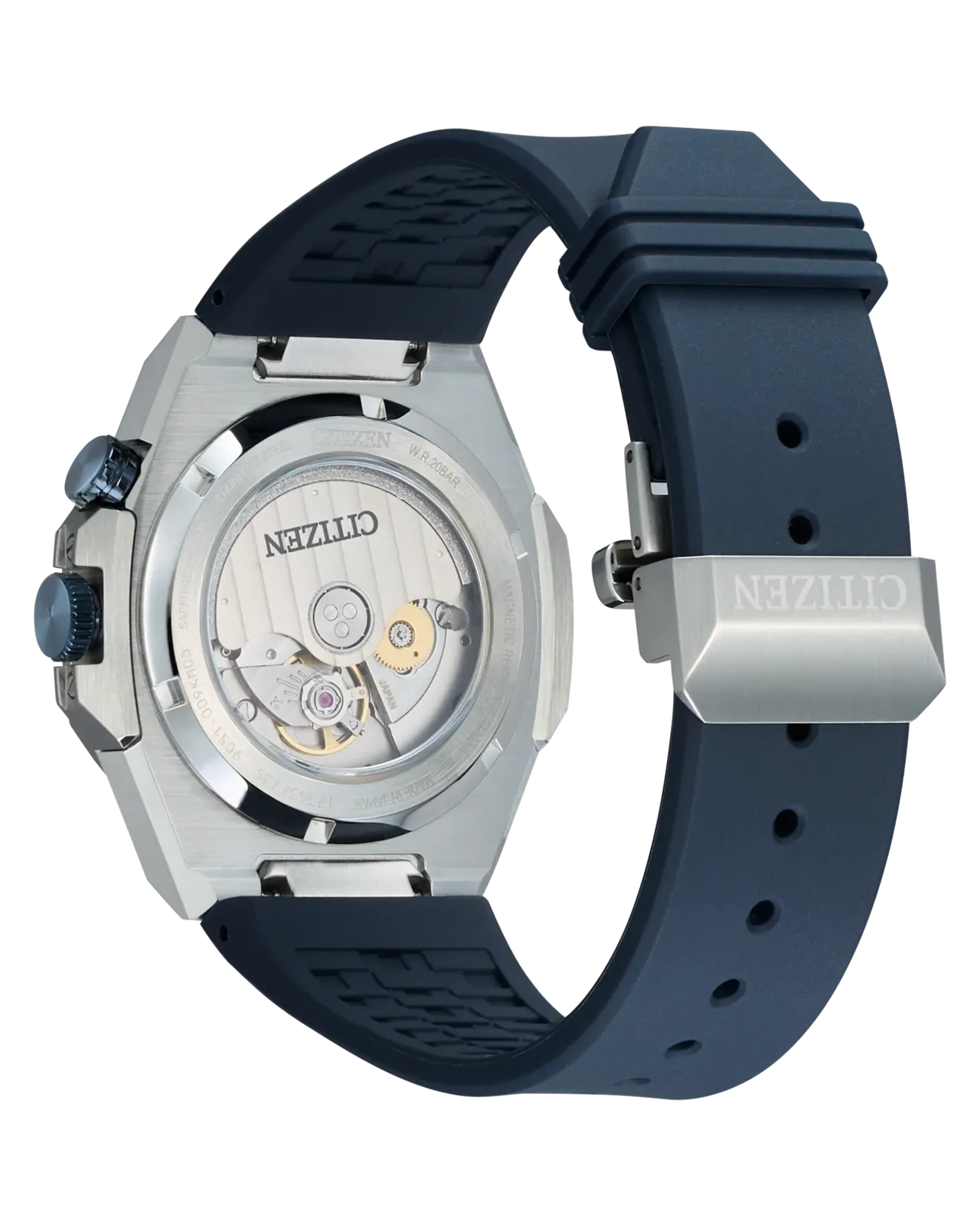 La lunetta interna bidirezionale ghiera interna girevole è un'altra delizia visiva. Può essere azionata agevolmente da una corona dedicata a ore 2 e contribuisce al carattere sportivo dell'orologio. C'è anche una discreta finestrella per la data a ore 3. Sul retro, una finestra espositiva in zaffiro mette in mostra il movimento automatico Calibro 9051 di Citizen. Batte a una velocità fluida di 28.800 vph, ha una riserva di carica di 42 ore e offre una resistenza magnetica fino a 16.000 A/m.
