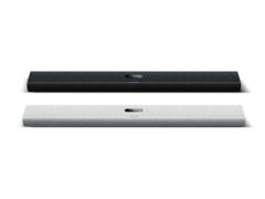 La soundbar ha 11 driver in totale, pesa 4,6 kg (~10,1 lbs) e misura 115 x 6,5 x 13 cm (~45 x 2,6 x 5-in). Il dispositivo è rivestito in tessuto di lana di Kvadrat, con dettagli in alluminio e un touchscreen LCD che ti dice cosa sta suonando.