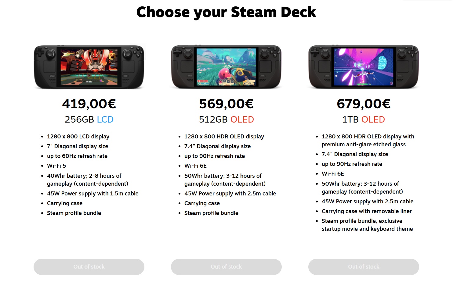 C'è un'avvertenza importante: la versione LCD di Steam Deck non è più in produzione non è più in produzionee questo spiega perché quel modello è esaurito quasi ovunque. I problemi di disponibilità più ampi, tuttavia, riguardano anche la linea attuale.
