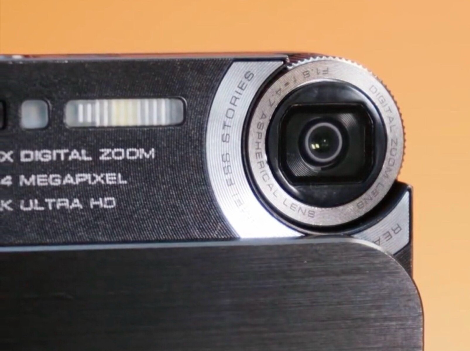 L'aspetto delle foto può essere regolato con 18 filtri e la fotocamera supporta le modalità sport, ritratto e notte. Una fotocamera selfie aggiuntiva si trova accanto al piccolo display sul retro. La batteria integrata può essere comodamente ricaricata con un cavo USB-C, e la P100 può anche essere utilizzata come webcam tramite questo cavo. Le foto e i video vengono memorizzati su una scheda microSD.