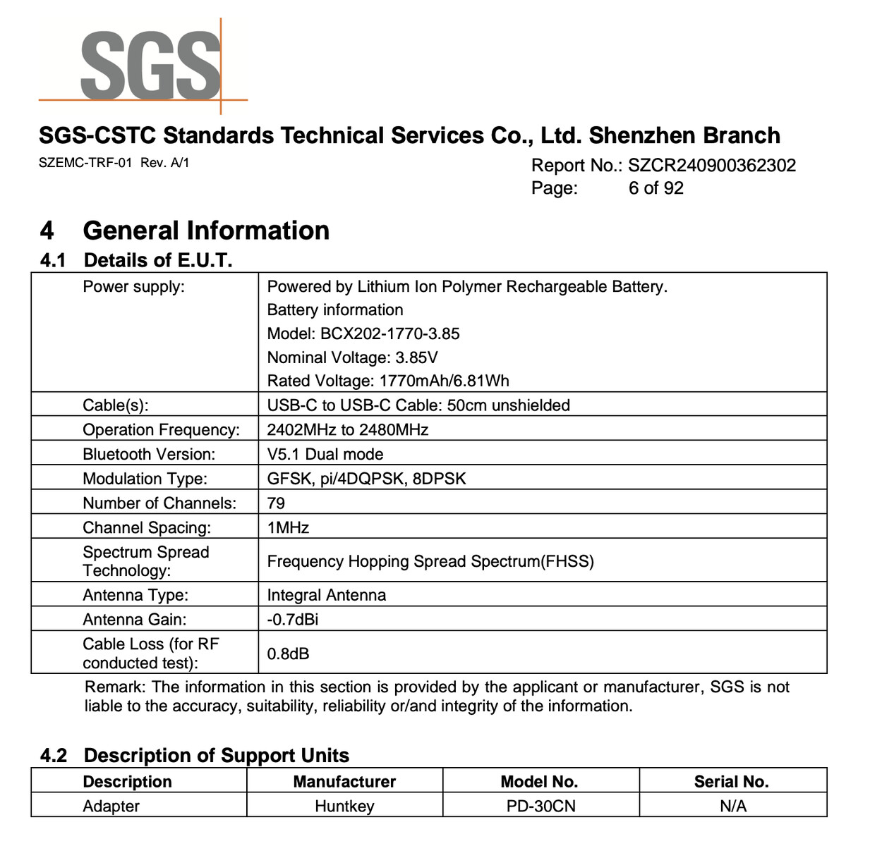 Tuttavia, DJI ha depositato documenti simili presso l'SGS verso la fine di ottobre. Come mostrano gli screenshot, entrambi gli enti normativi si riferiscono all'AC006 con il suo nome al dettaglio 'Osmo Action 6'. Inoltre, confermano che la action camera supporta la connettività Bluetooth 5.1, oltre al Wi-Fi a 2,4 GHz e 5 GHz.