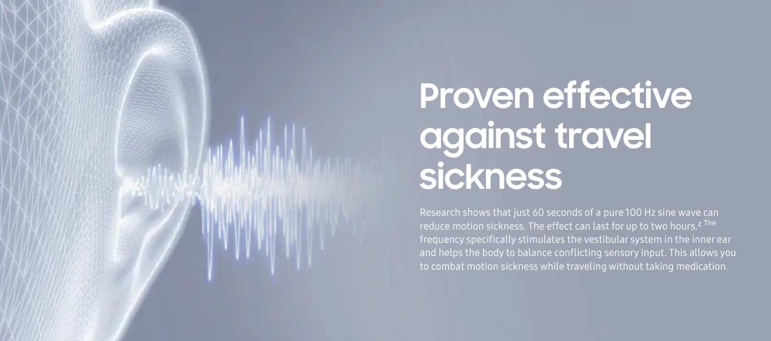 Il tono sinusoidale basso a 100Hz deve essere ascoltato per 60 secondi prima del viaggio, anche se gli utenti possono impostare la durata della riproduzione tra 40 e 120 secondi. Tuttavia, Samsung afferma che l'effetto dura fino a due ore. Gli utenti possono poi ripetere la procedura quando lo ritengono opportuno.