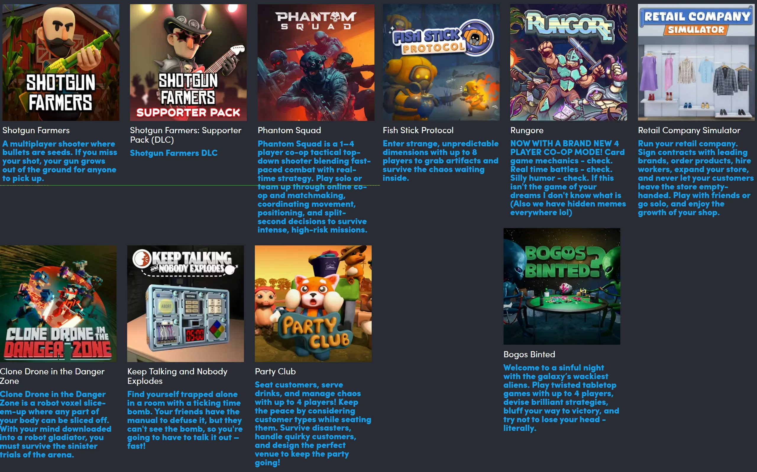 Tutti sono progettati per il gioco di gruppo e ognuno di essi offre una visione diversa del multiplayer competitivo multigiocatore competitivo competitivo o in co-op. I giochi inclusi sono giocabili anche su Steam Deck e quasi tutti hanno una valutazione positiva dei giocatori di almeno l'80%.