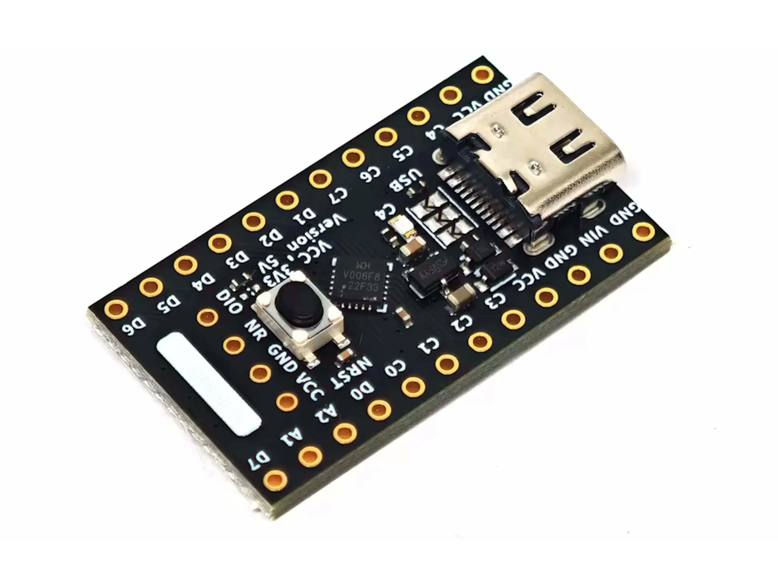 Invece, è destinato più che altro a collegare vari sensori e attuatori. Un caso d'uso molto semplice potrebbe essere il controllo di diversi LED in base alla lettura di un sensore. Per supportare questo, WeAct CH32V006F8U6 include due intestazioni a 12 pin, che lasciano ampia flessibilità per il collegamento di componenti esterni. È disponibile anche un SDK per la programmazione, anche se l'utilizzo dell'IDE Arduino non è semplice, se è possibile.