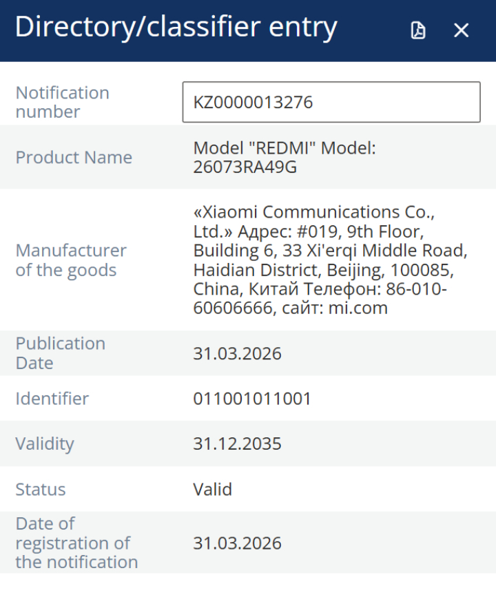 Pertanto, sospettiamo che Xiaomi lancerà il 26073RA49G nel corso dell'anno. Inoltre, il suo numero di modello conferma che si tratta di un dispositivo globale. Inoltre, il numero di modello suggerisce che Xiaomi introdurrà il dispositivo intorno a luglio 2026 in qualche modo.