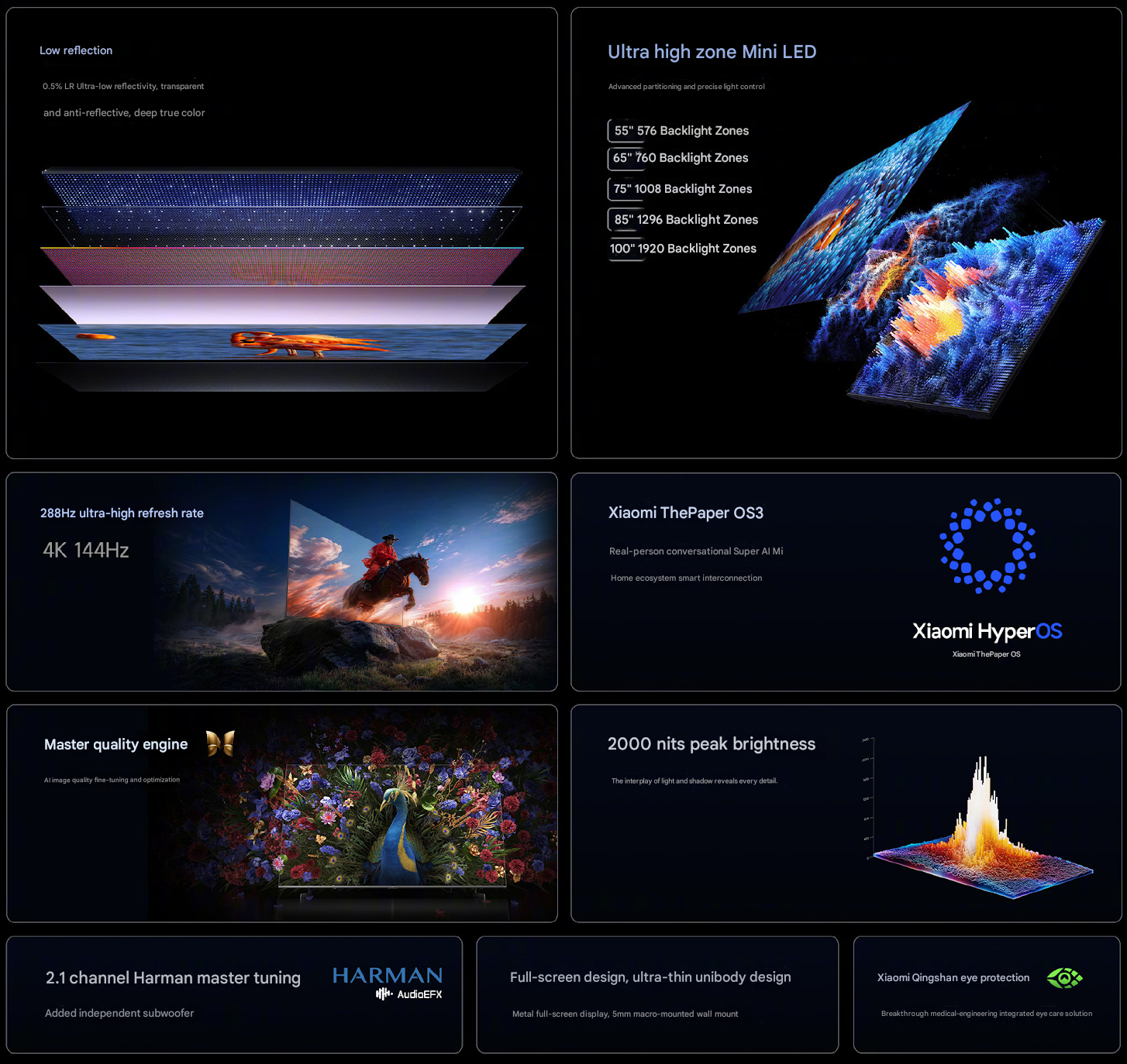 La linea aggiornata di Xiaomi S Mini LED TV promette anche un'esperienza di gioco fluida con una frequenza di aggiornamento fino a 288 Hz e, grazie al rivestimento a bassa riflessione, i display mirano a offrire un'esperienza visiva confortevole in diverse condizioni di illuminazione. Nel reparto audio, c'è un sistema sonoro a 2.1 canali con sintonizzazione Harman AudioEFX. Guardi il il nostro precedente servizio per saperne di più su questa serie.