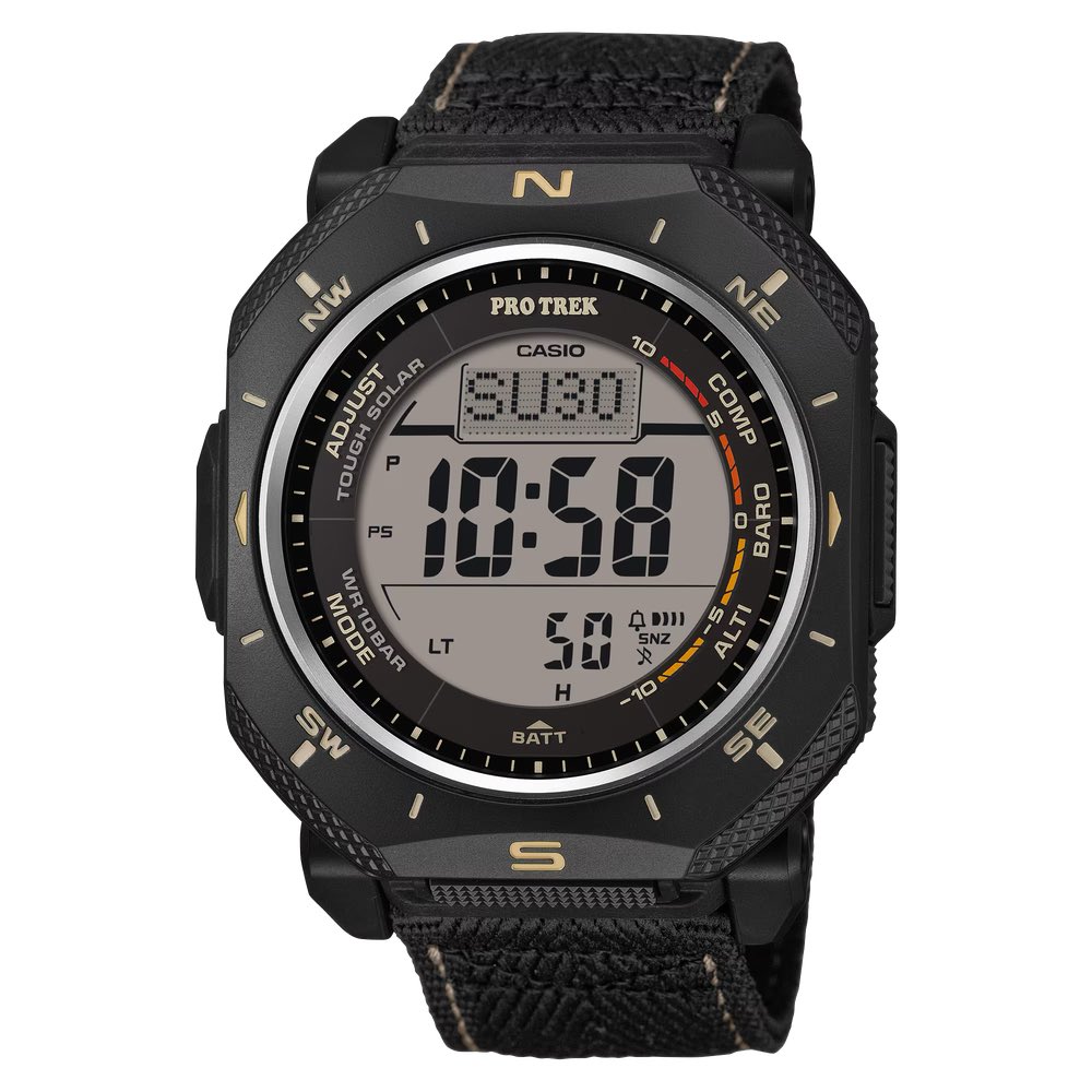 La serie angolare Pro Trek PRG-69 di Casio riceve a sorpresa un terzo modello con una fascia in tessuto
