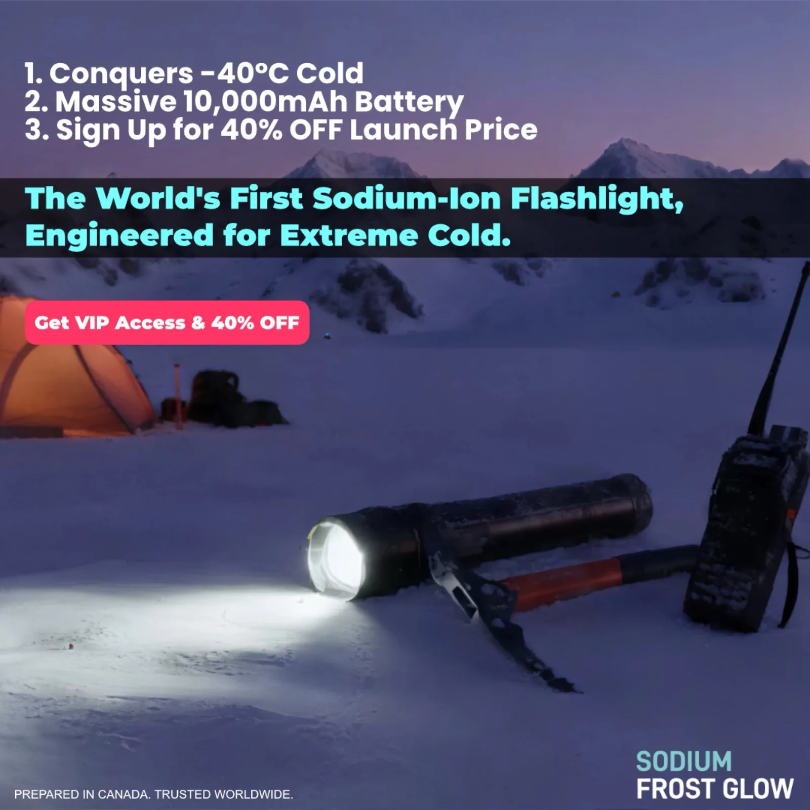 Le batterie al litio funzionano meglio al di sopra del congelamento, poiché la loro tensione scende molto più rapidamente a temperature molto basse, riducendo drasticamente la loro autonomia. Una nuova torcia è stata progettata per risolvere questo problema utilizzando una batteria agli ioni di sodio. Si suppone che questa batteria mantenga l'88% del suo tempo di funzionamento abituale a -40°C, rispetto ad appena il 15% di una batteria al litio.