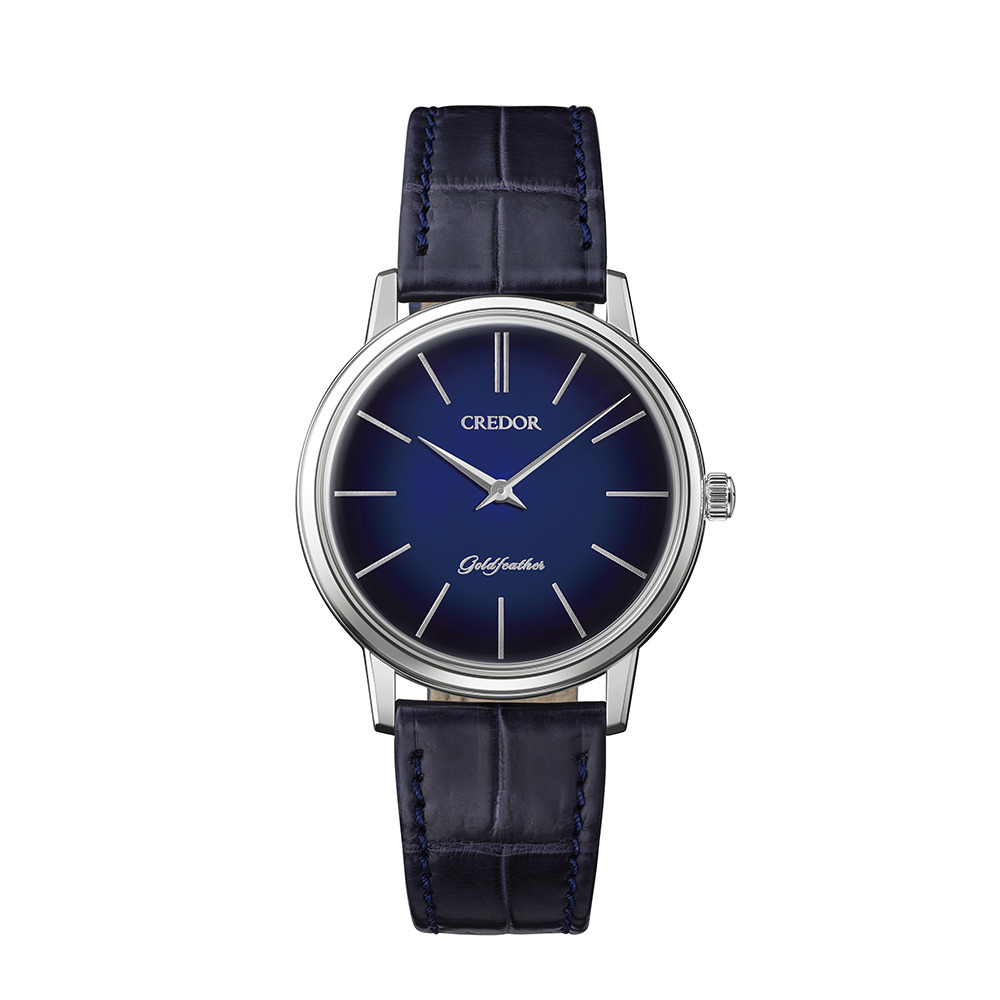 Il Goldfeather GBBY967 presenta un quadrante in lacca Urushi a gradiente blu. Gli artigiani applicano la lacca in più strati per ottenere una transizione fluida e naturale dallo scuro al chiaro nel quadrante. Gli indici vengono rialzati utilizzando il "taka maki-e" con polvere di platino. Questo orologio ospita il Calibro 6810 manuale in una cassa in platino da 37,1 mm. Ha uno spessore di 7,3 mm, una resistenza all'acqua di 3 bar e un prezzo di vendita di 3.520.000 JPY (~22.210 dollari).