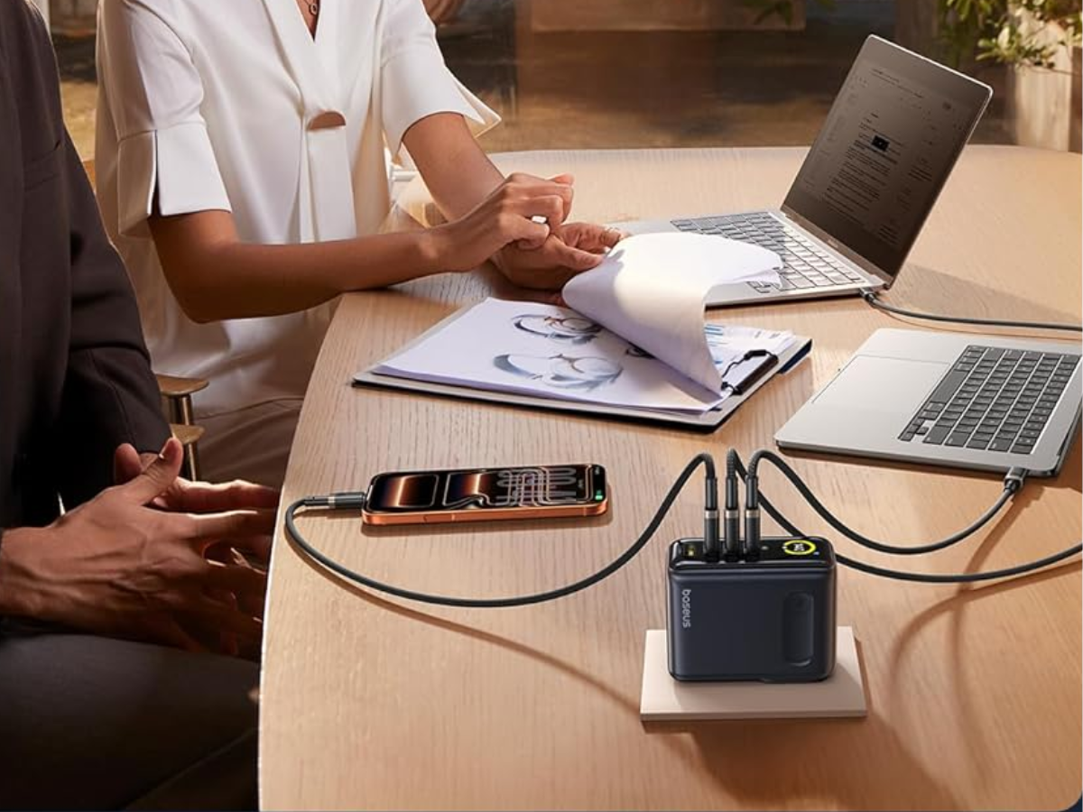 PicoGo AH11 è un caricatore a quattro porte, con tre uscite USB-C e un'uscita USB-A. La potenza massima di 140W è disponibile tramite USB-C, e Baseus suggerisce che questo consente di ricaricare un MacBook Pro 16 (M4) al 54% in mezz'ora. L'azienda suggerisce che, quando si caricano più dispositivi contemporaneamente, la potenza viene distribuita in modo intelligente. Ad esempio, l'USB-C potrebbe offrire 65W, 45W e 12W, rispettivamente, con l'USB-A che fornisce 12W.