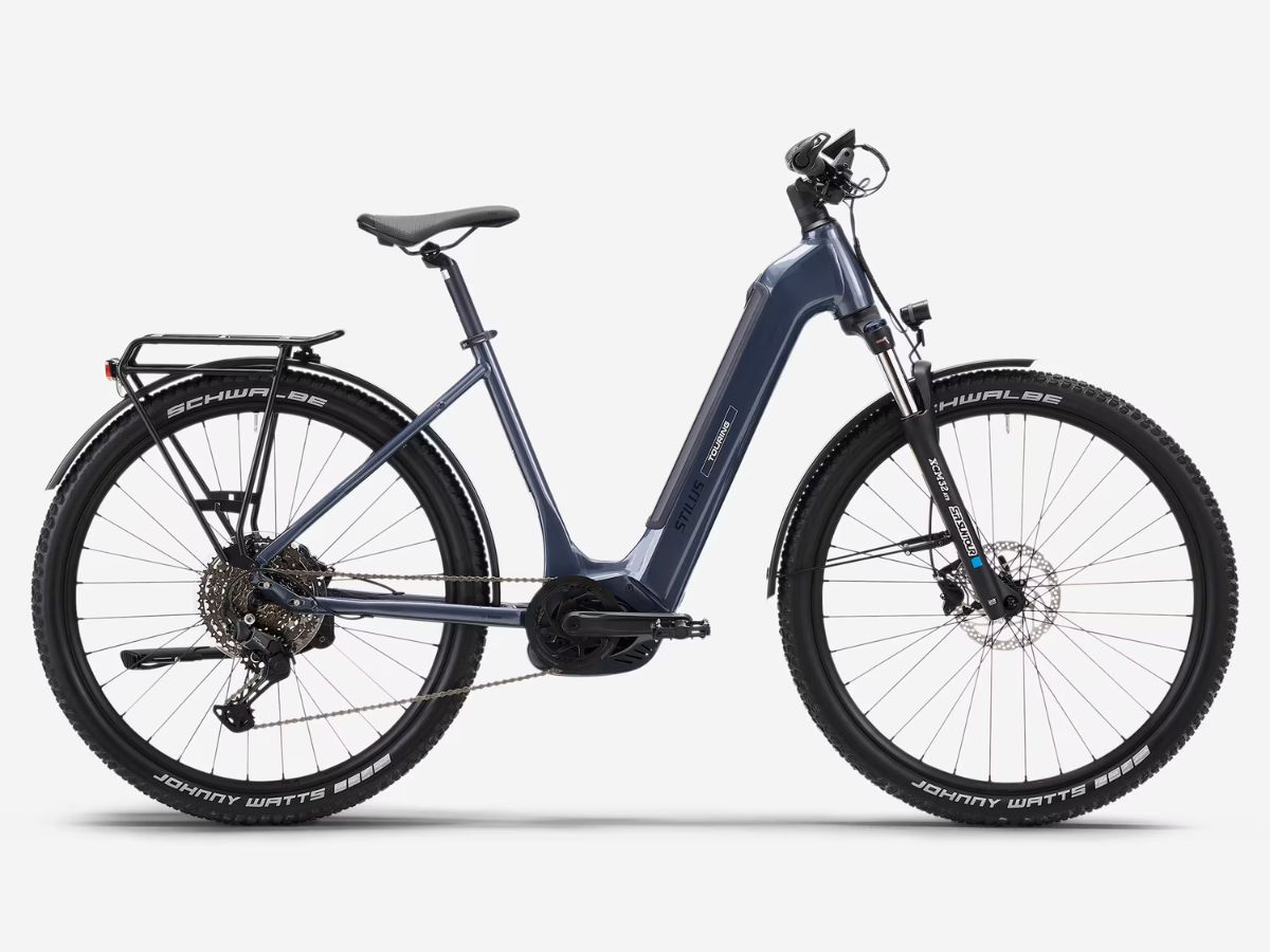 La nuova e-bike Stilus E-Touring di Decathlon ha un telaio basso, a gradini, mentre il suo predecessore era un modello con telaio alto. Come le versioni precedenti, il nuovo modello è alimentato da un motore Bosch Performance Line CX con una coppia fino a 85 Nm, per una velocità massima di assistenza di 25 km/h (~16 mph). Questo è accompagnato da una batteria rimovibile Bosch PowerTube da 750 Wh, che si dice possa garantire un'autonomia di assistenza fino a 130 km (~80,8 miglia) in modalità Eco.