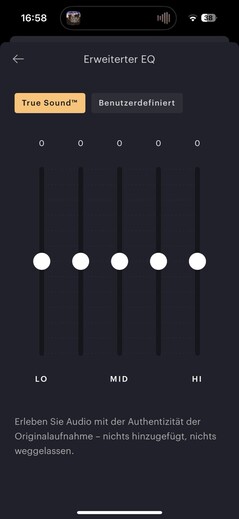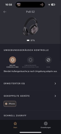 È un peccato che il pulsante per passare dalla modalità ANC alla modalità trasparenza non fornisca un feedback chiaro - B&W riproduce diversi toni per mostrare agli utenti quale modalità è stata selezionata. Tuttavia, questi toni non sono autoesplicativi e quindi devono essere memorizzati. D'altra parte, il suono non è semplicemente udibile durante la riproduzione della musica. Anche se le cuffie abbassano brevemente la musica quando si preme il pulsante, il suono viene riprodotto prima e quindi non è udibile a volumi più alti