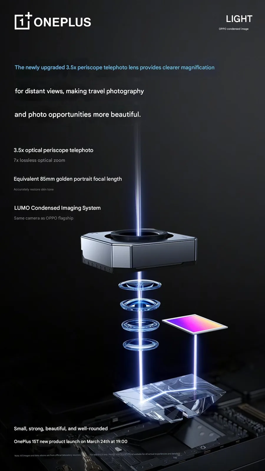 Nell'ultima serie di teaser, OnePlus ha confermato alcuni dettagli sulla configurazione della fotocamera dello smartphone. Secondo un post su Weibo pubblicato dal marchio, OnePlus 15T sarà dotato di uno shooter primario da 50 MP con apertura f/1.8 e di un teleobiettivo con periscopio da 50 MP f/2.8 con funzionalità di zoom ottico 3,5x. È stato anche menzionato che lo shooter primario utilizzerà un sensore da 1/1,56 pollici prodotto da Sony.
