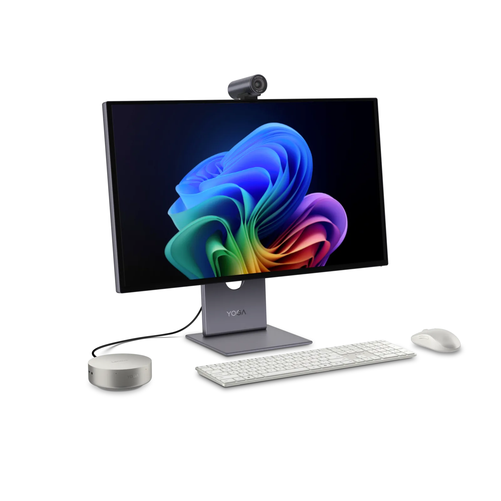 La connettività wireless comprende il Wi-Fi 7 e il Bluetooth 6.0. Lo Yoga Mini i integra anche il rilevamento della presenza tramite il rilevamento Wi-Fi, che consente la sveglia automatica e le notifiche ambientali di base. L'alimentazione avviene tramite un adattatore USB-C da 100W e il dispositivo è disponibile con finitura Seashell.