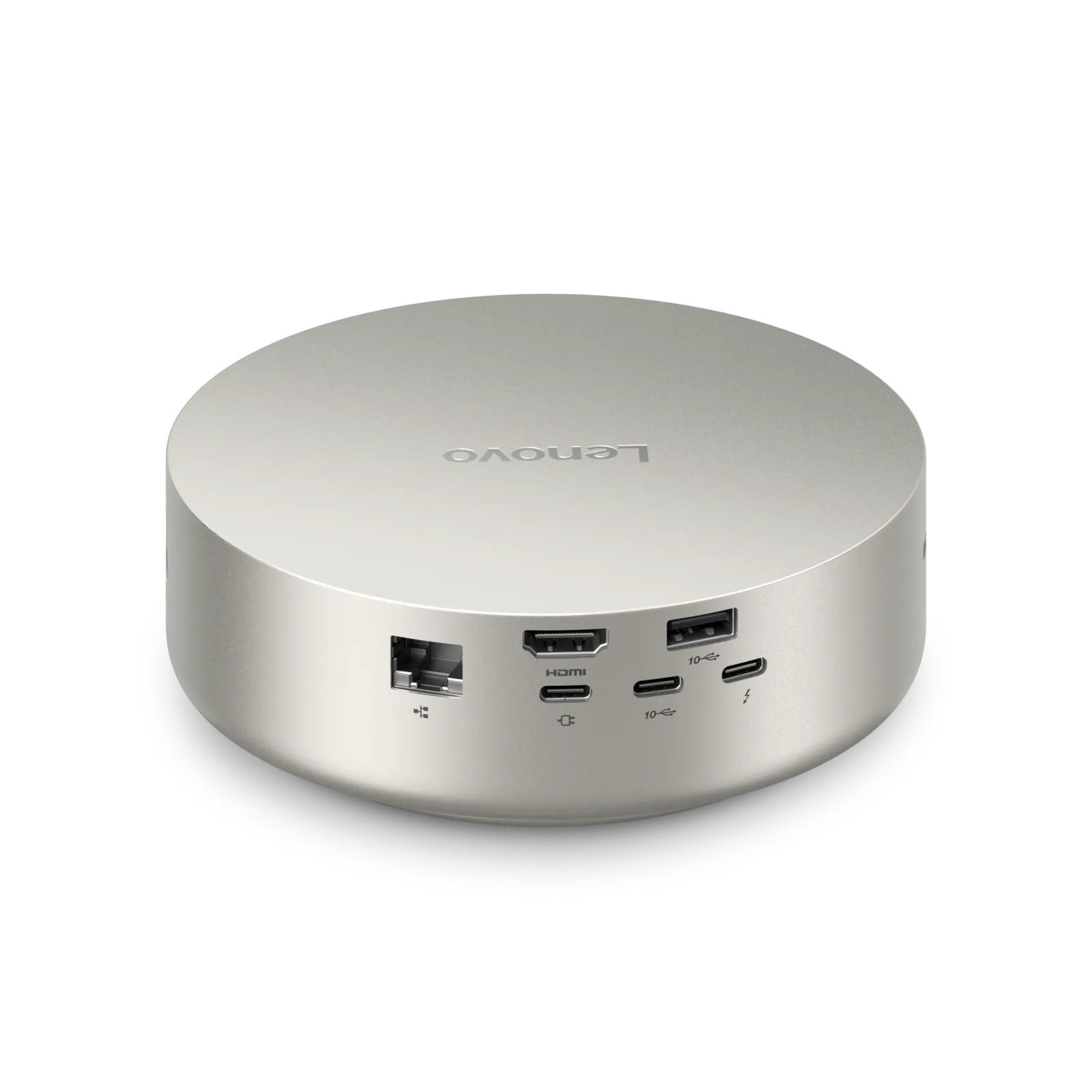 A livello di connettività, il mini PC è dotato di due porte Thunderbolt 4, due porte USB-C 3.2 Gen 2 full-function, USB-A, HDMI 2.1 TMDS e una porta Ethernet 2.5G. Lenovo dichiara che il sistema può supportare fino a quattro display esterni ad alta risoluzione contemporaneamente.