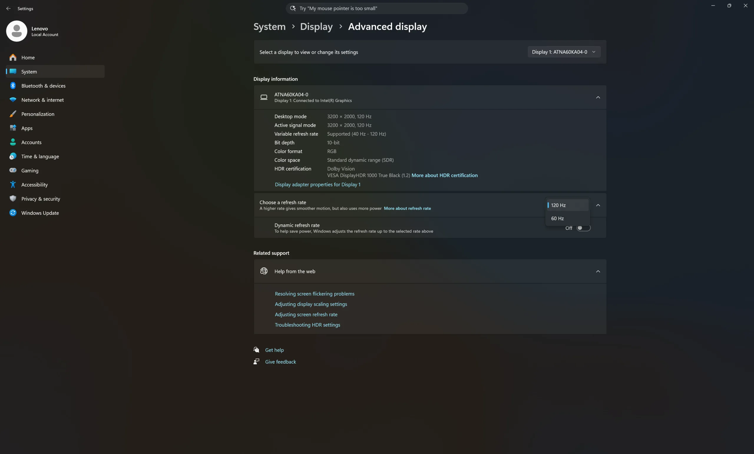 Lenovo continua a spedire computer portatili con display ad alta frequenza di aggiornamento impostati su 60 Hz. Ecco una soluzione semplice