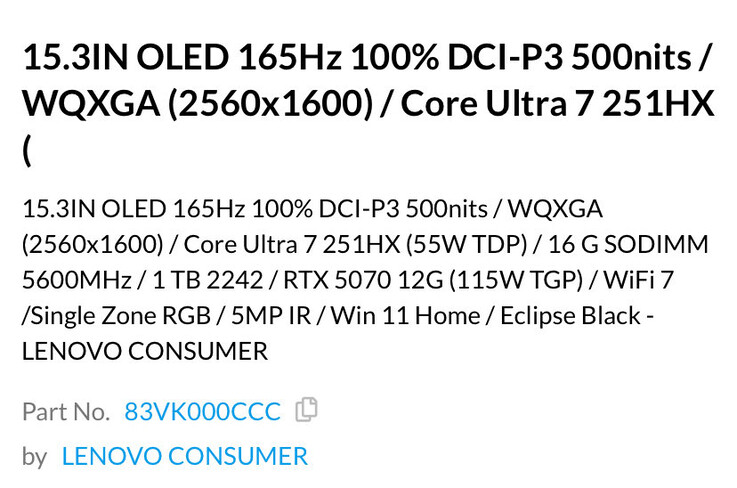 Sebbene sia tutto previsto, Amazon menziona anche il processore Core Ultra 7 251HX non ancora rilasciato. Nel frattempo, Cendirect Canada menziona esplicitamente una versione da 12 GB di VRAM della Nvidia GeForce RTX 5070. Caratterizzata da una potenza grafica totale (TGP) fino a 115 W, questa GPU inedita sembra destinata a essere lanciata all'interno dello Yoga Pro 7 e del ROG Zephyrus G14, oltre ad altri computer portatili da gioco.