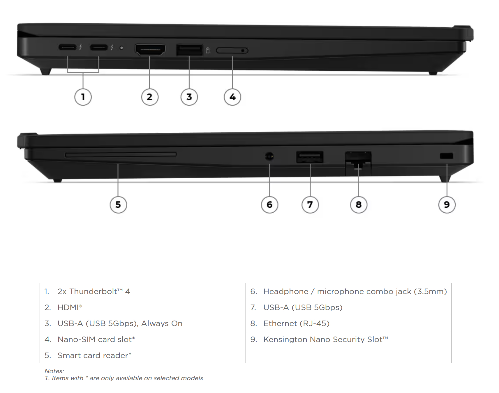 Inoltre, Lenovo include opzioni di configurazione per NFC, un lettore di impronte digitali, una webcam con capacità IR, una batteria da 75 Wh, un adattatore di alimentazione USB Type-C da 100 W e 4G WWAN in alcuni mercati. Tenga presente che l'aggiunta di tutti questi extra fa lievitare il prezzo del ThinkPad T14 Gen 7 a 8.019 AUD in Australia, a 3.400 sterline nel Regno Unito e a 3.899~3.960 euro nell'area euro. L'elenco completo delle opzioni di processore Panther Lake disponibili al lancio è il seguente: