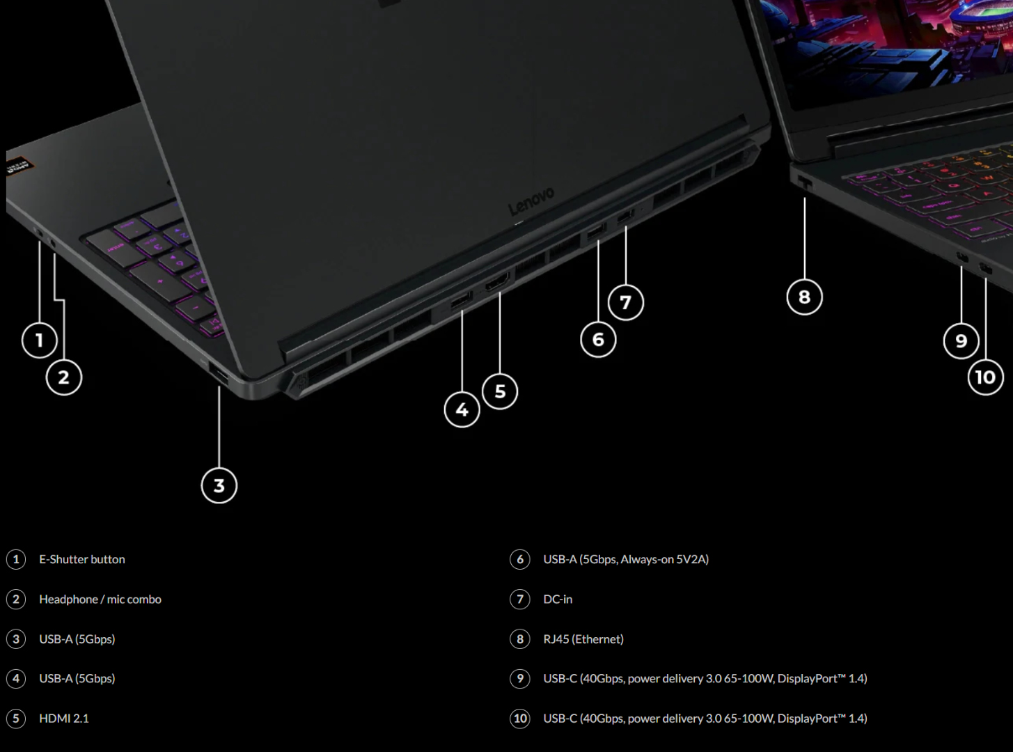 Mentre Legion 5a mantiene una batteria da 80 Wh, il suo peso è diminuito di 50 g, passando a 1,88 kg. Inoltre, Lenovo continua ad includere un display da 15,3 pollici e 16:10. Un pannello OLED, il display combina una frequenza di aggiornamento di 165 Hz e tempi di risposta di 1 ms con una risoluzione di 2.560 x 1.600 pixel su tutte le SKU.