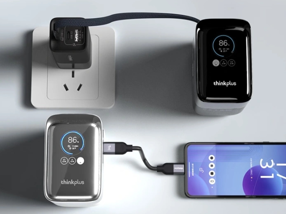 Il Power Bank con cavo retrattile ThinkPlus supporta diversi protocolli di ricarica rapida, tra cui PPS, PD3.2 e QC, e offre anche la ricarica pass-through. Questo modello ha un display TFT integrato da 2,01 pollici, che mostra le informazioni di ricarica in tempo reale. Misura 82 x 81 x 51 mm (~3,2 x 3,2 x 2,0 pollici) e viene fornito con un piccolo cordino per facilitarne il trasporto.