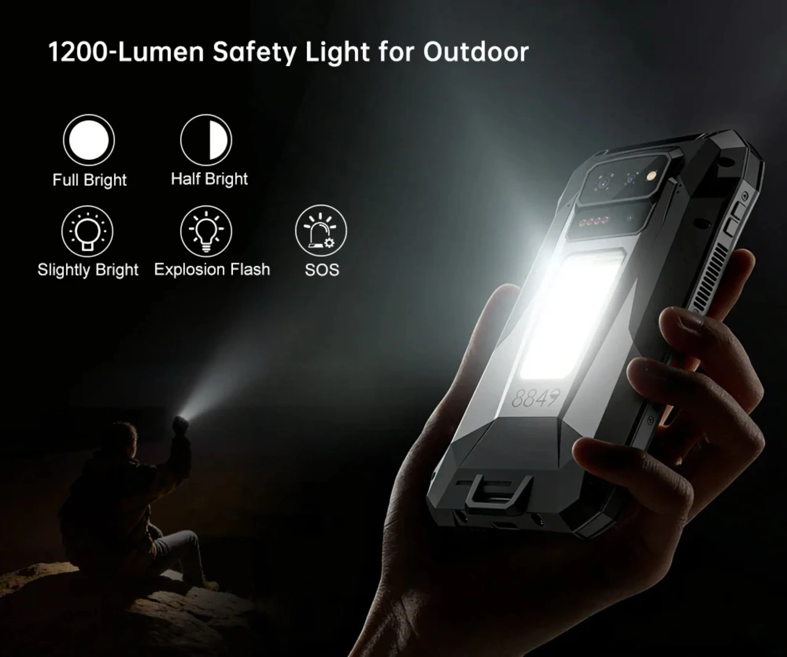L'enorme batteria da 17.600 mAh consente un'autonomia del proiettore di 5 ore alla massima luminosità con una sola carica. Lo smartphone può essere ricaricato tramite USB-C fino a 120 watt, mentre altri dispositivi possono essere caricati fino a 10 watt. Un'altra caratteristica speciale è la grande luce da campeggio sul retro, che ha una luminosità massima di 1.200 lumen. Nel frattempo, la fotocamera per la visione notturna da 64 megapixel è abbinata a quattro LED a infrarossi, in modo da poter scattare foto anche nel buio più completo.